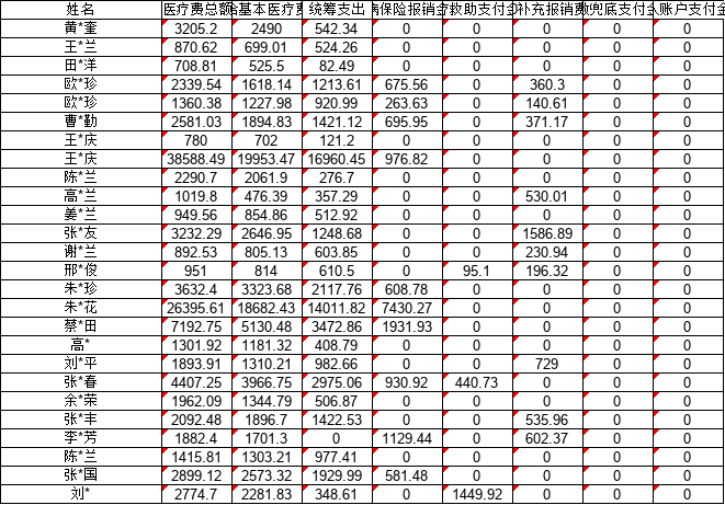 临淮岗乡2021年8月份新农合医疗补助清册
