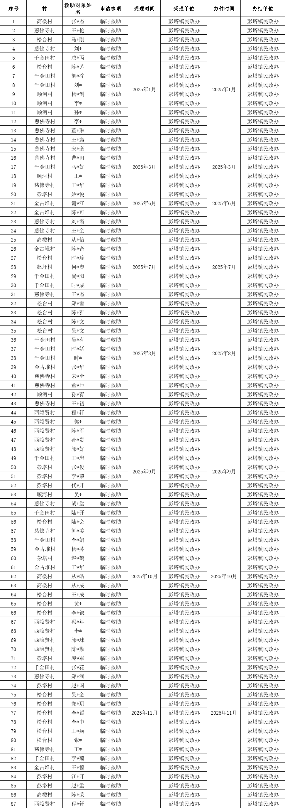 【行政权力】霍邱县彭塔镇2025年临时救助审核确认办理结果