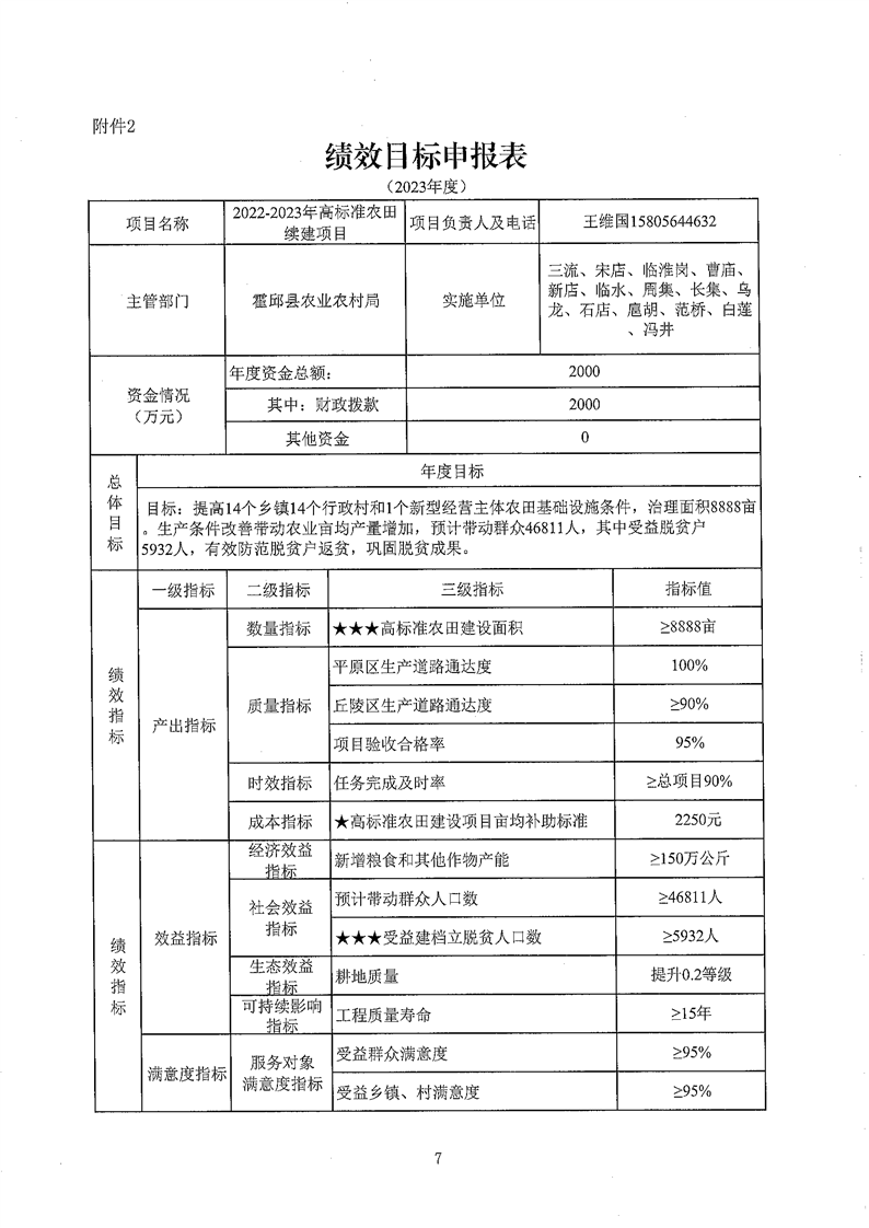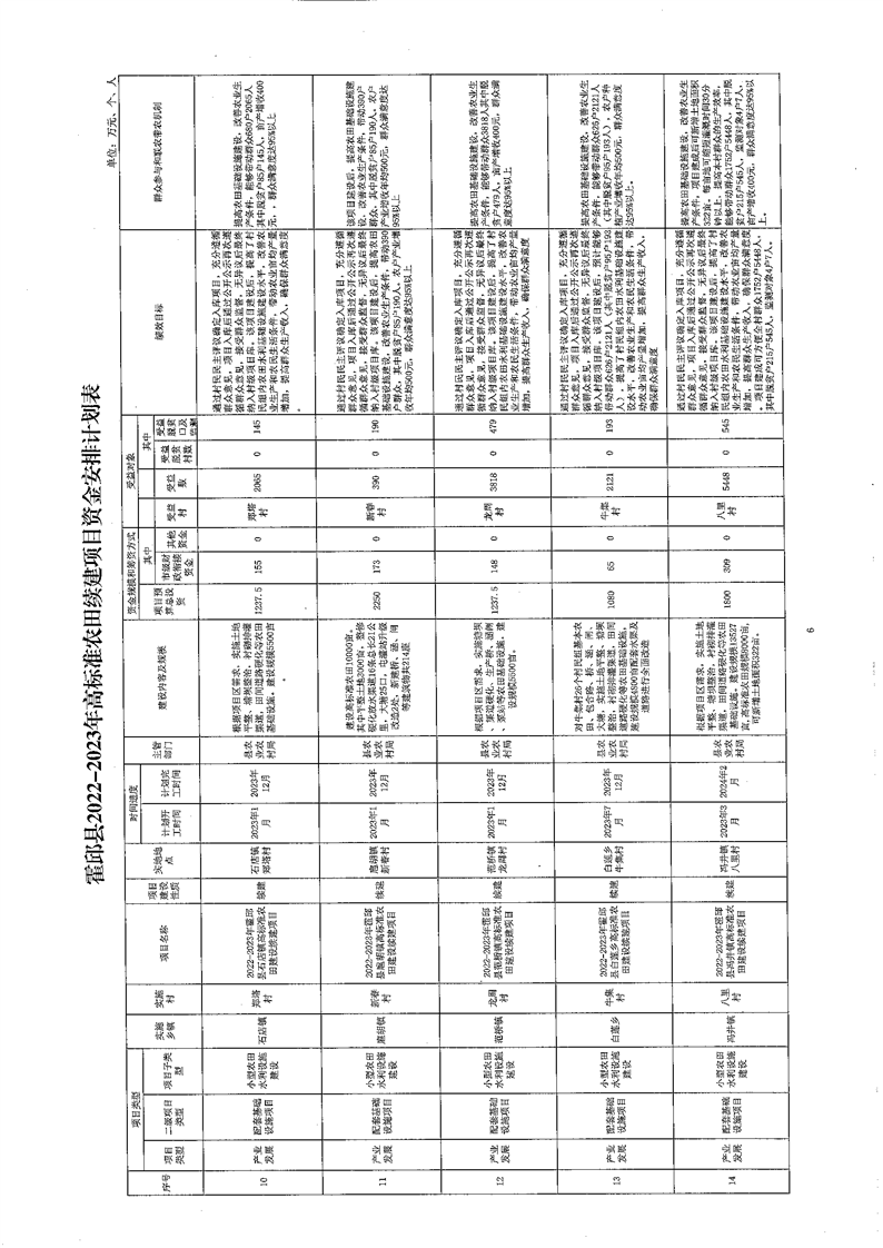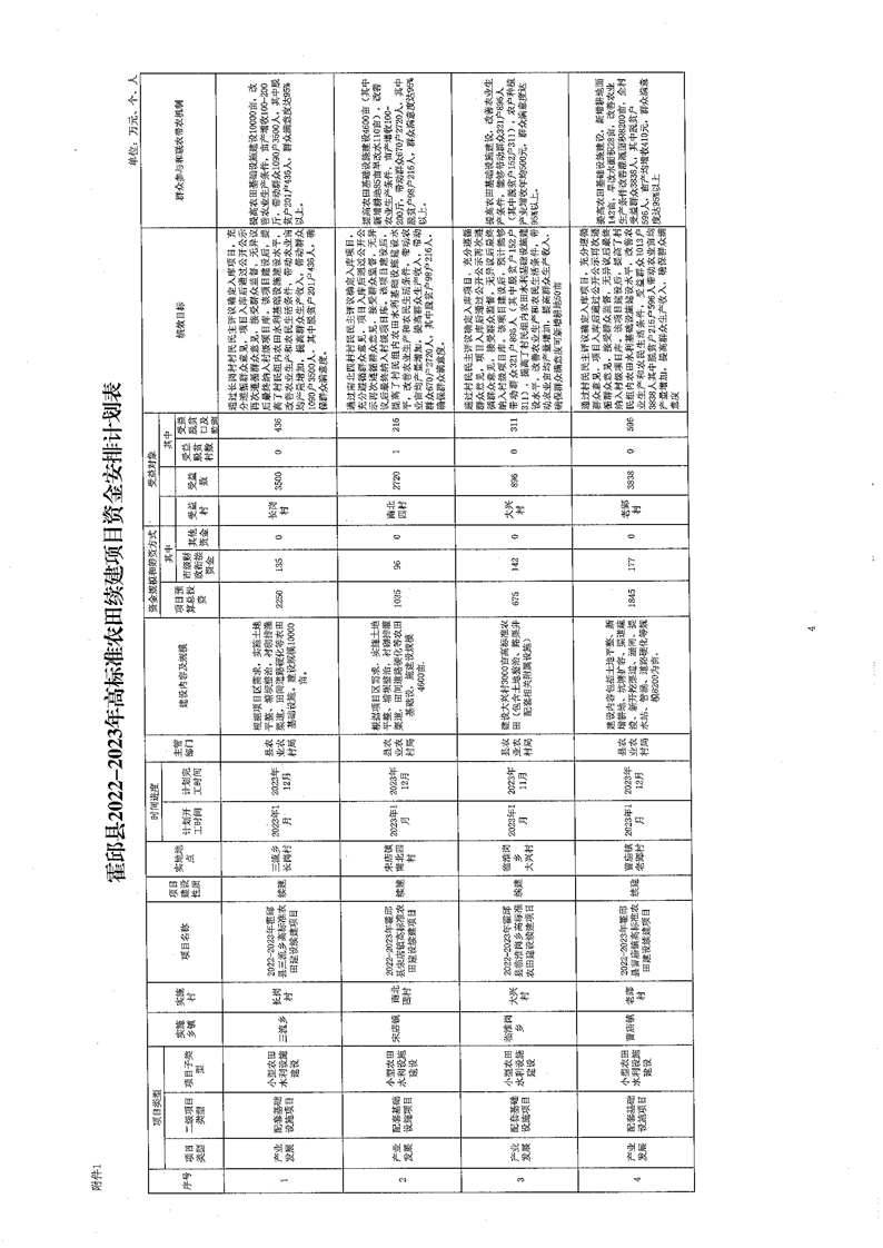 附件1: 霍邱县2022--2023年高标准农田续建项目资金安排计划表
