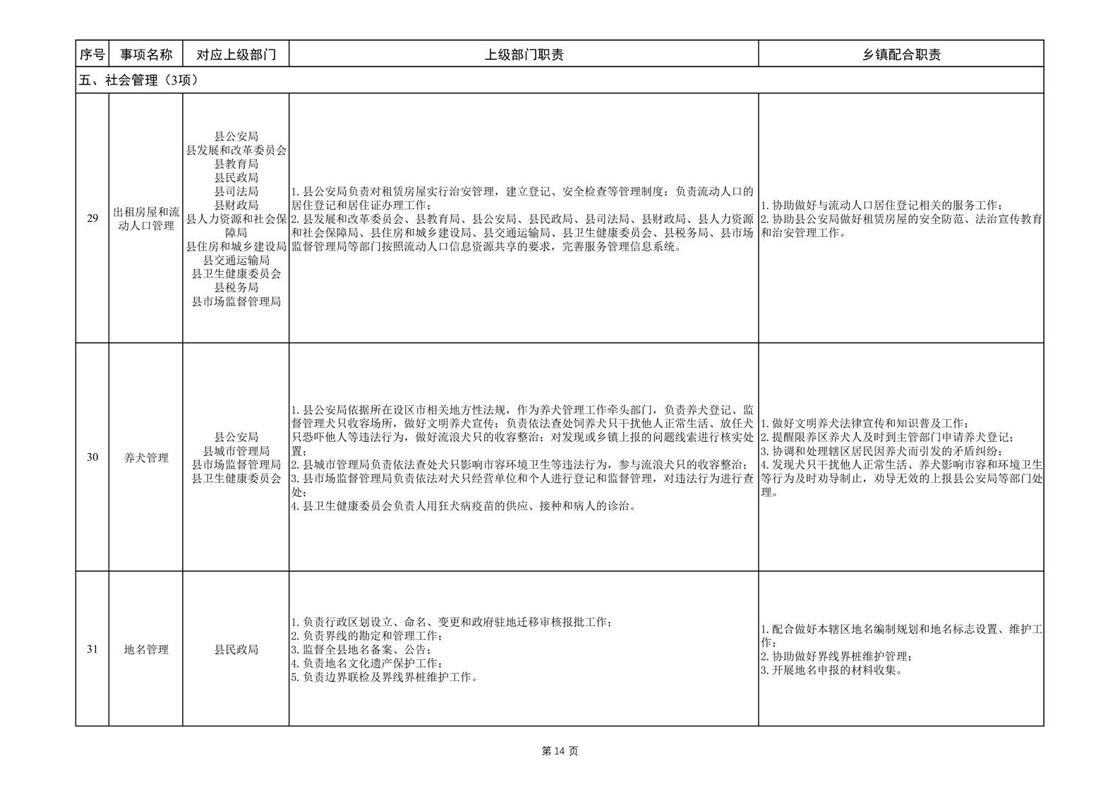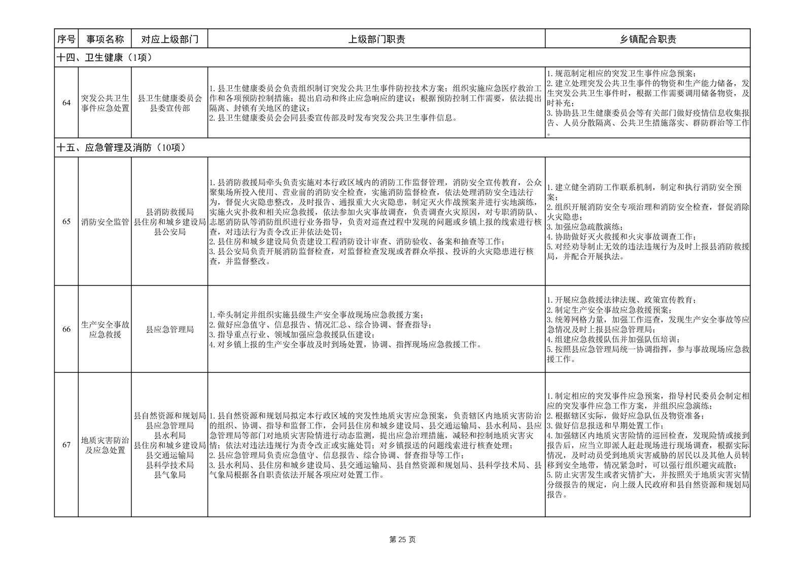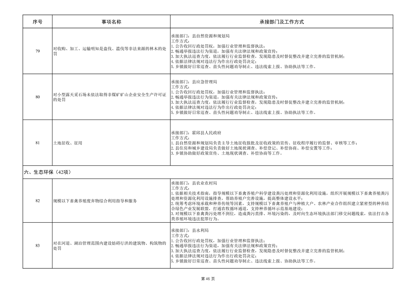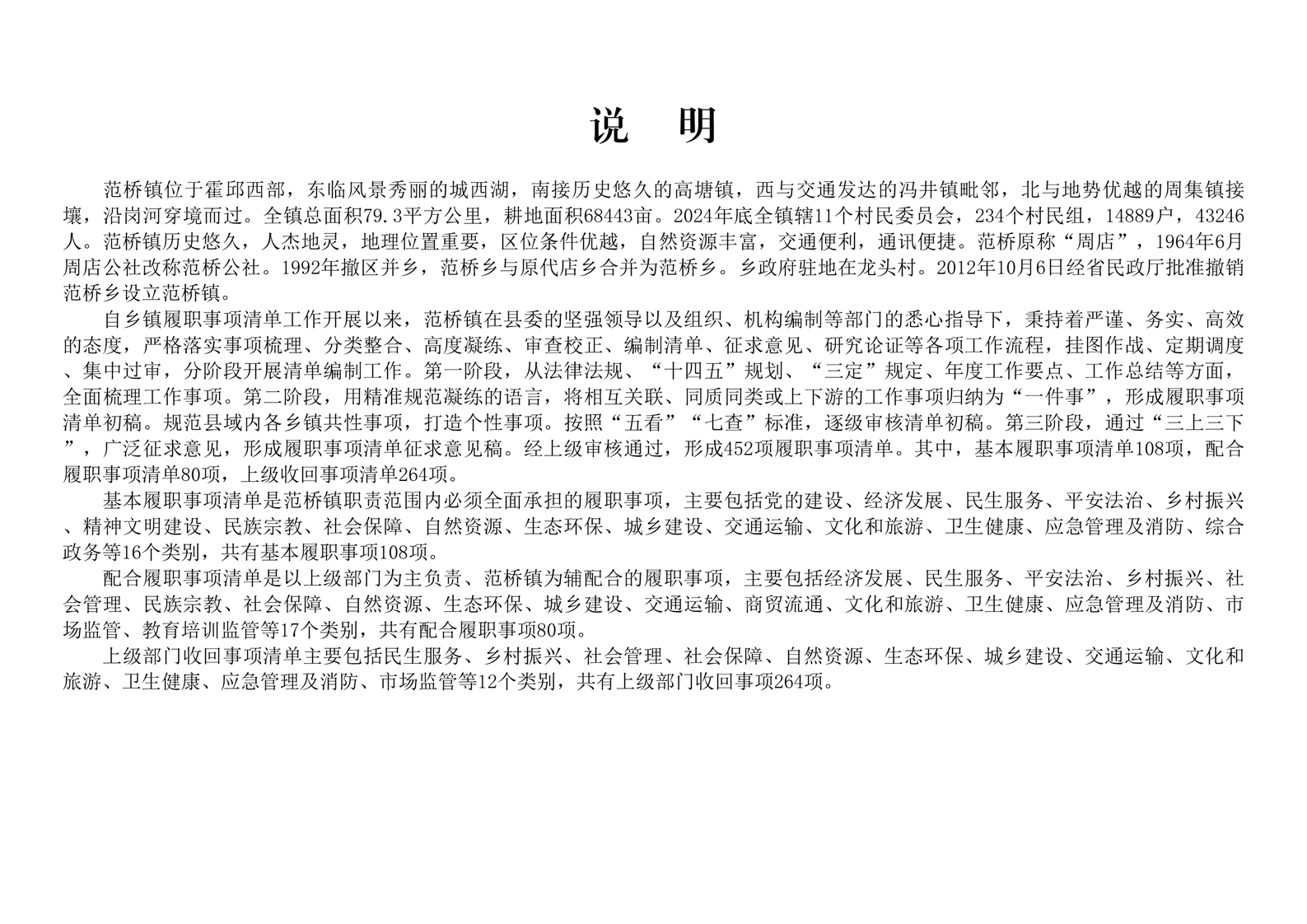 六安市霍邱县范桥镇履职事项清单