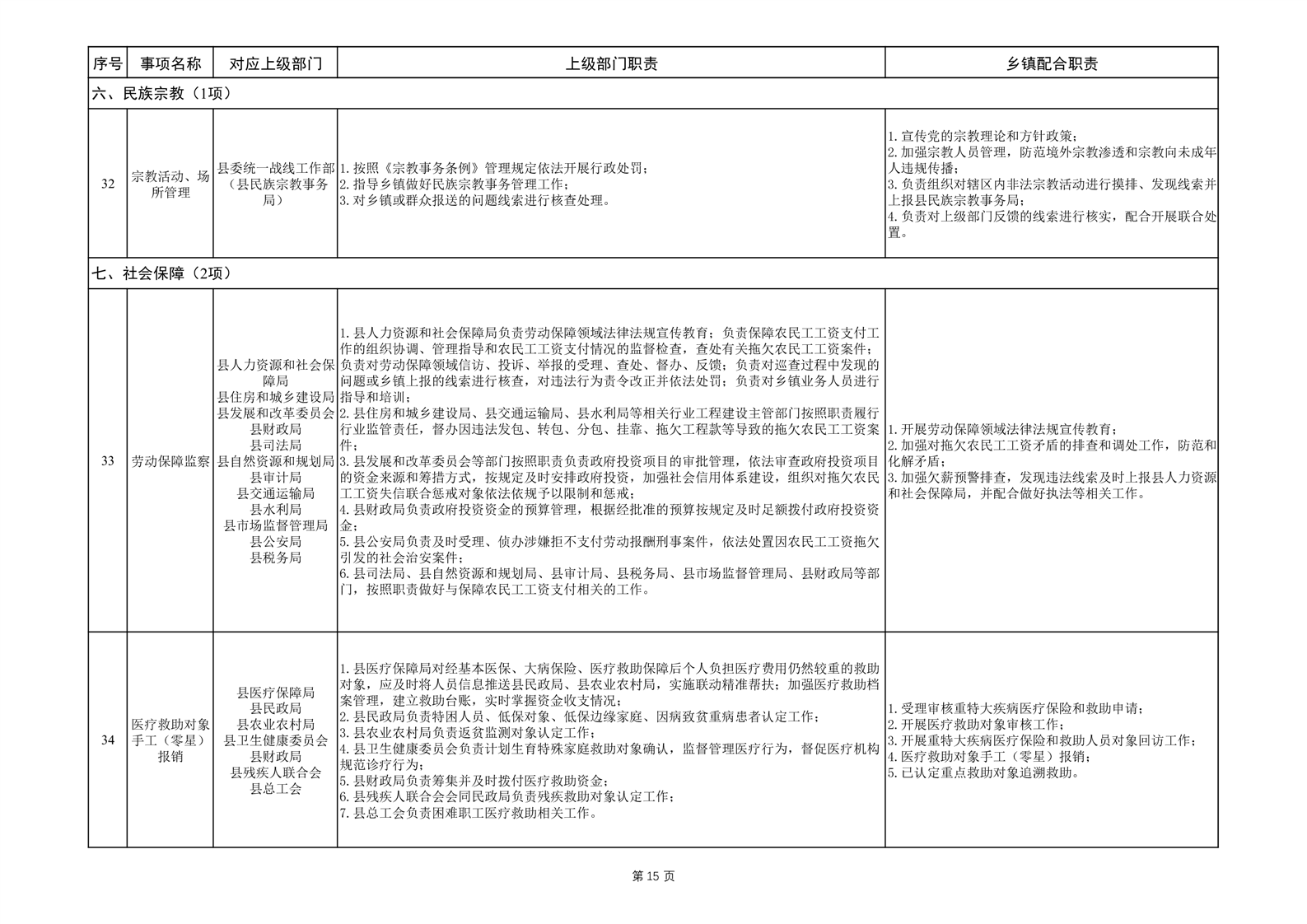 履职事项清单