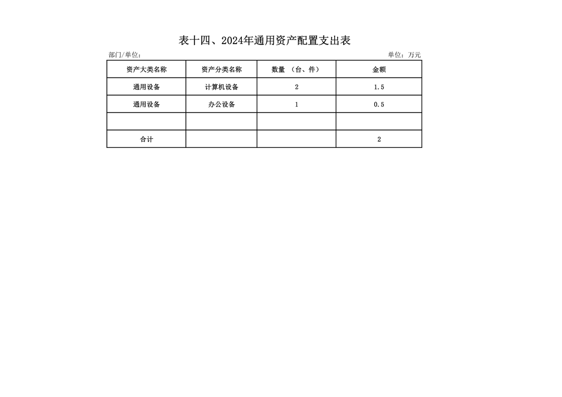 2024年单位预算安排购置单位价值50万元以上的通用设备0台(套),购置费0万元;安排购置单位价值100万元以上专用设备0台(套),购置费0万元。