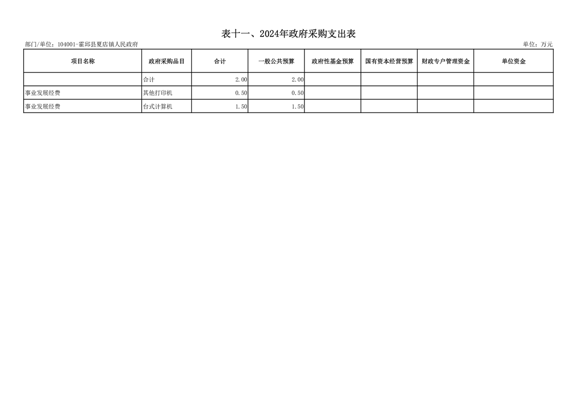 11.夏店镇人民政府2024年政府采购支出表