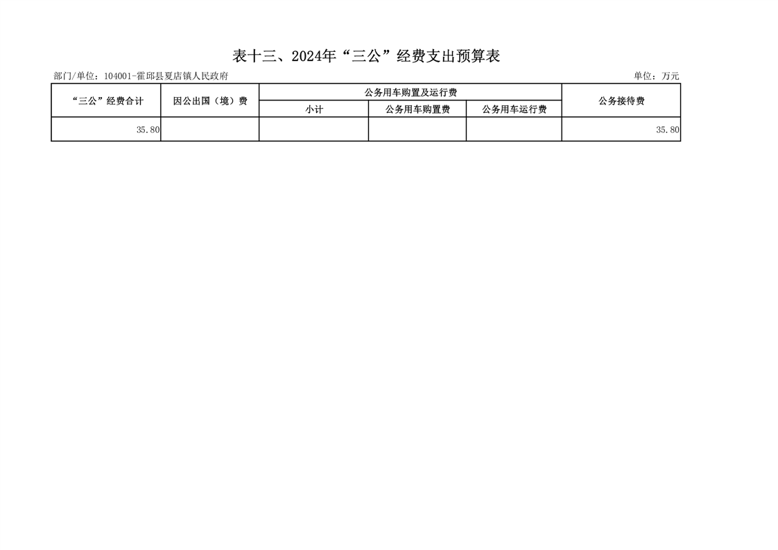 13.夏店镇人民政府2024年“三公”经费支出预算表