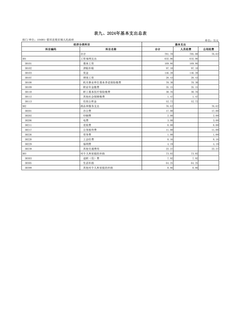 9.夏店镇人民政府2024年基本支出总表