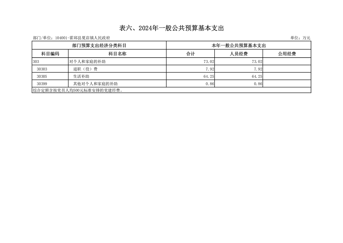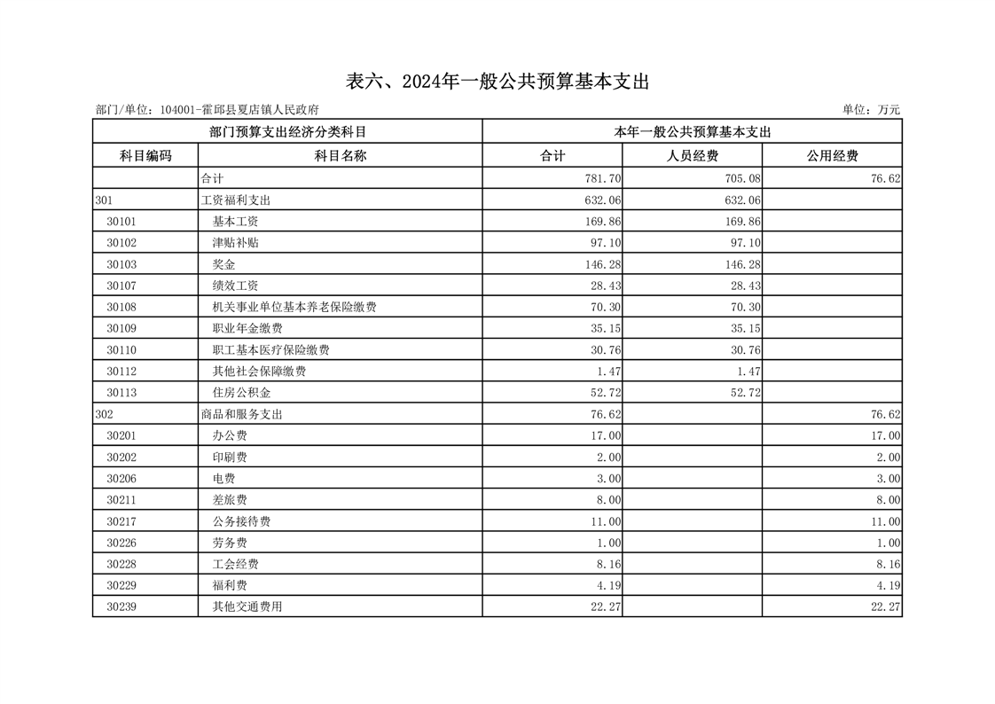 6.夏店镇人民政府2024年一般公共预算基本支出表(附件2-表6)