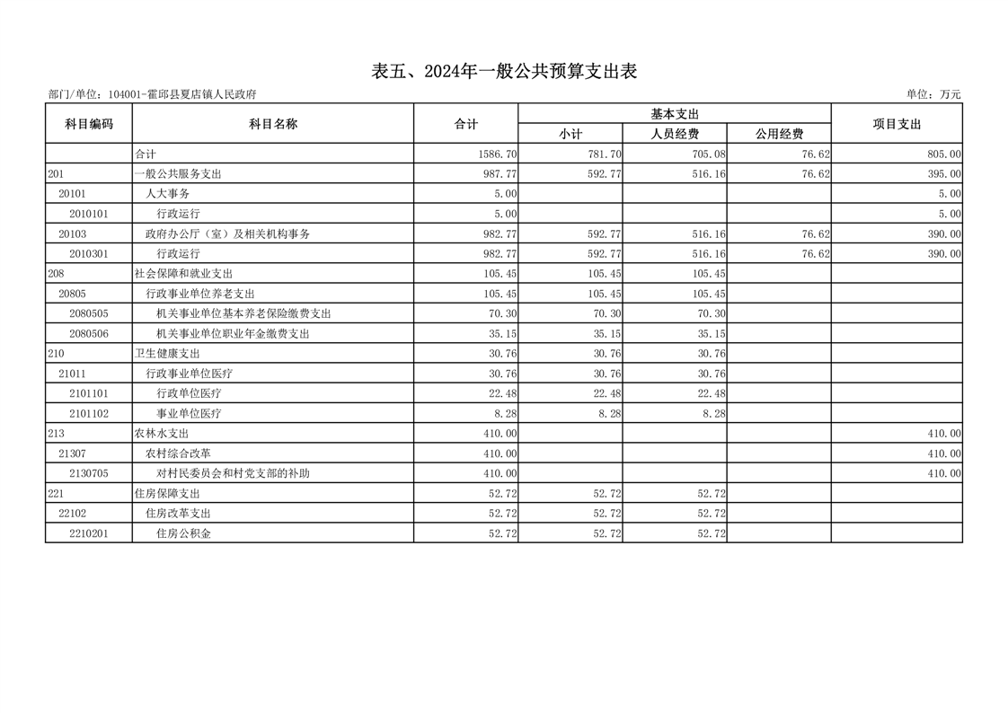 按照综合预算的原则,夏店镇人民政府所有收入和支出均纳入部门预算管理。夏店镇人民政府2024年收支总预算1586.7万元,收入全部是一般公共预算拨款收入,支出包括:一般公共服务支出、社会保障和就业支出、卫生健康支出、农林水支出、住房保障支出。