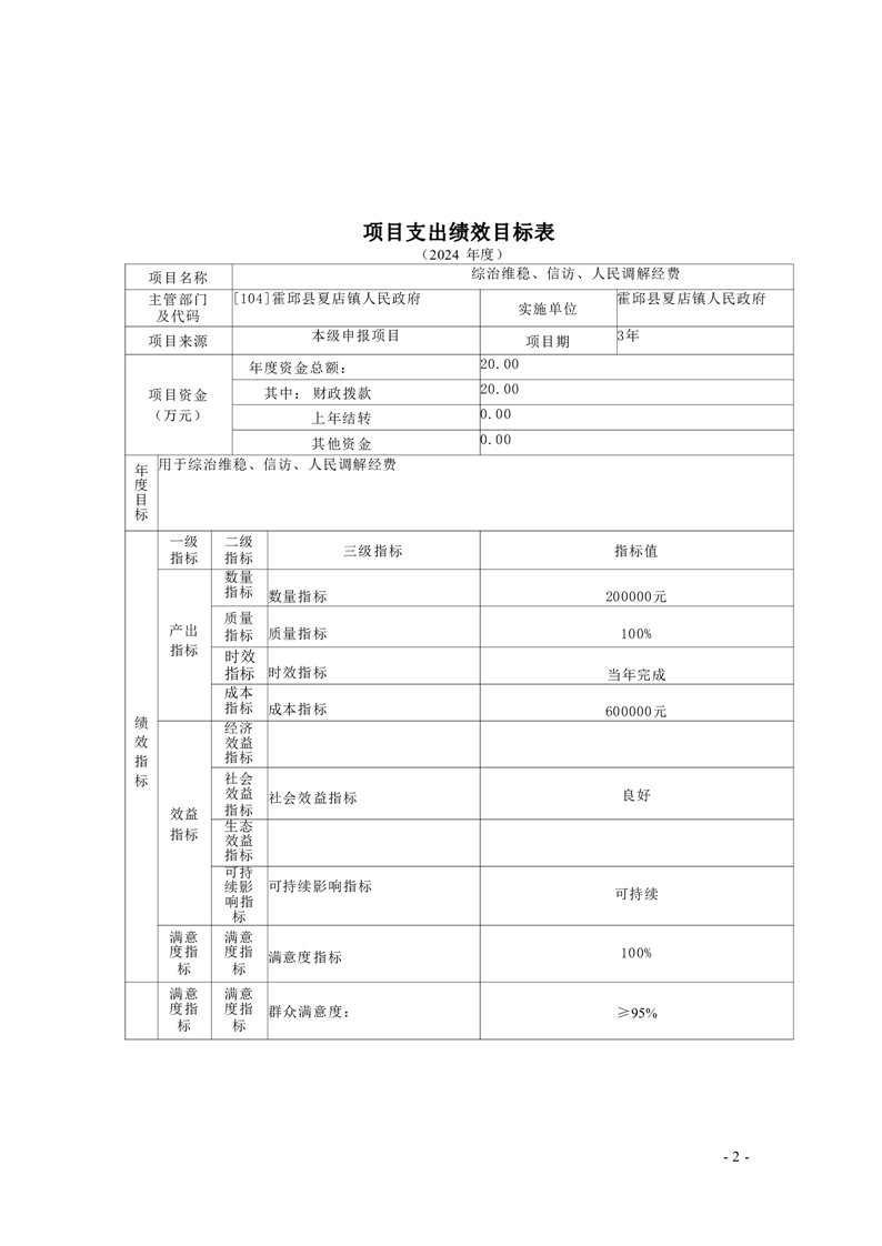 (5)项目内容。精确预算支出,按月拨付或一次性拨付综治维稳、信访、人民调解费。