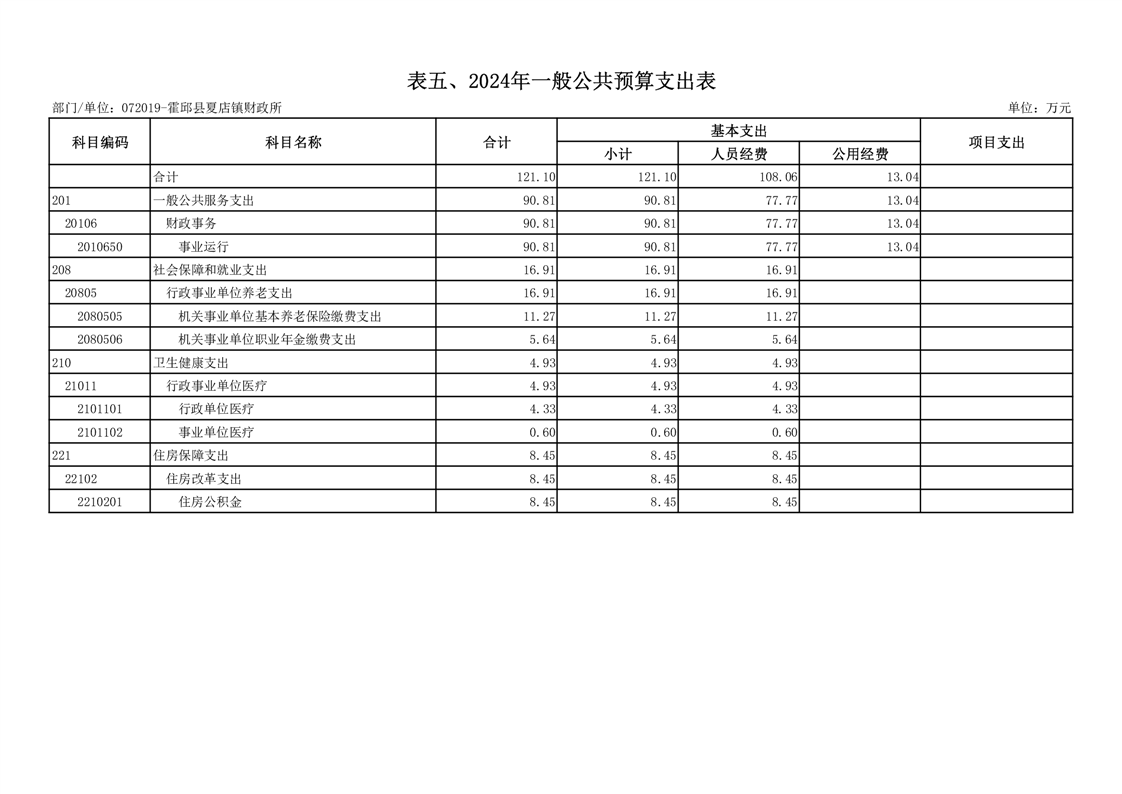5.霍邱县财政局夏店镇财政所2024年一般公共预算支出表