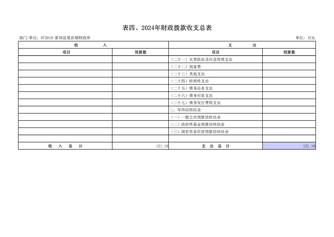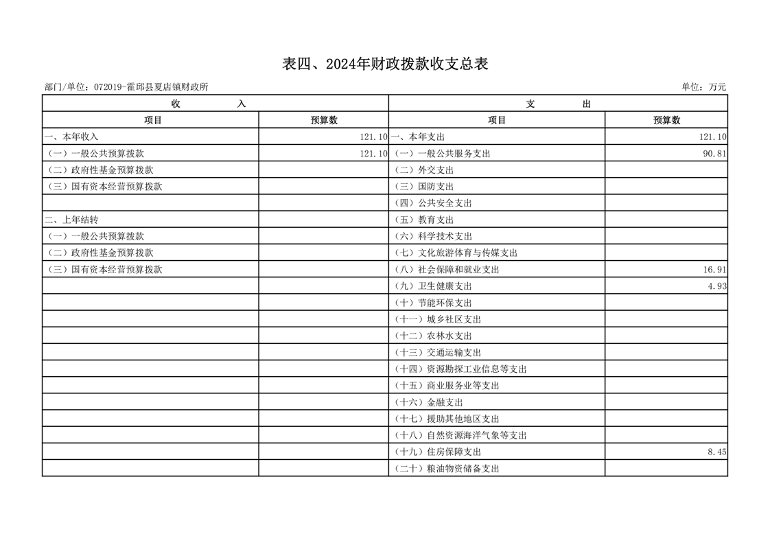 4.霍邱县财政局夏店镇财政所2024年财政拨款收支总表