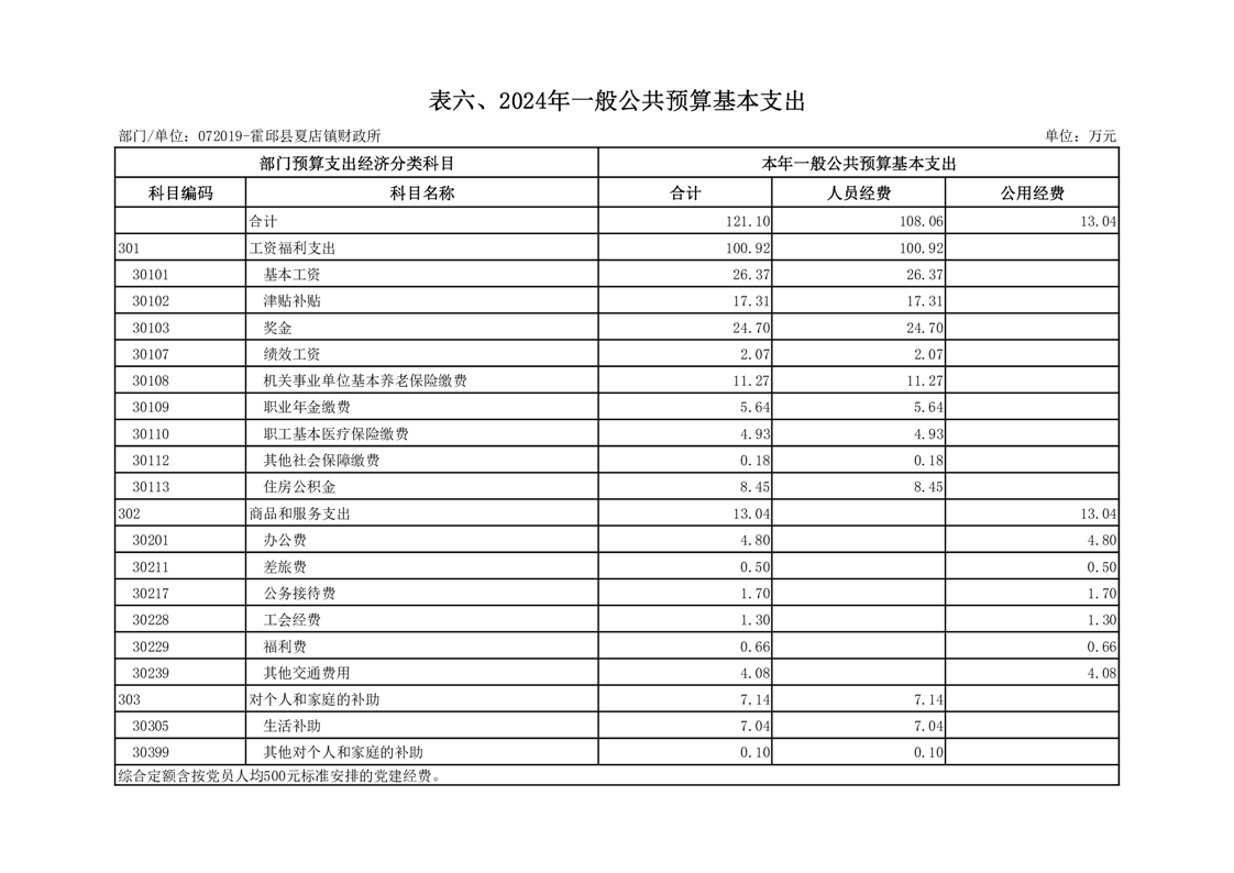 6.霍邱县财政局夏店镇财政所2024年一般公共预算基本支出表