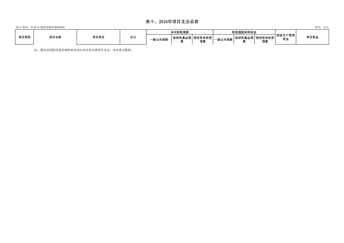 10.霍邱县财政局夏店镇财政所2024年项目支出总表(附件2-表10)