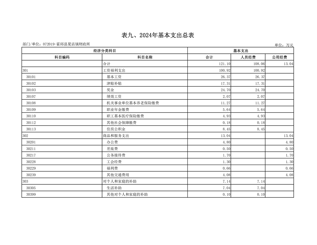 9.霍邱县财政局夏店镇财政所2024年基本支出总表(附件2-表9)