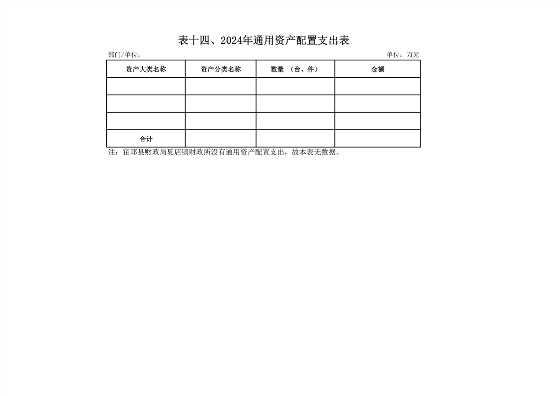 14.霍邱县财政局夏店镇财政所2024年通用资产配置支出表(附件2-表14)