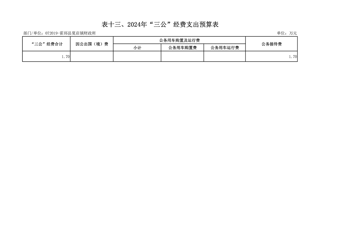 13.霍邱县财政局夏店镇财政所2024年“三公”经费支出预算表