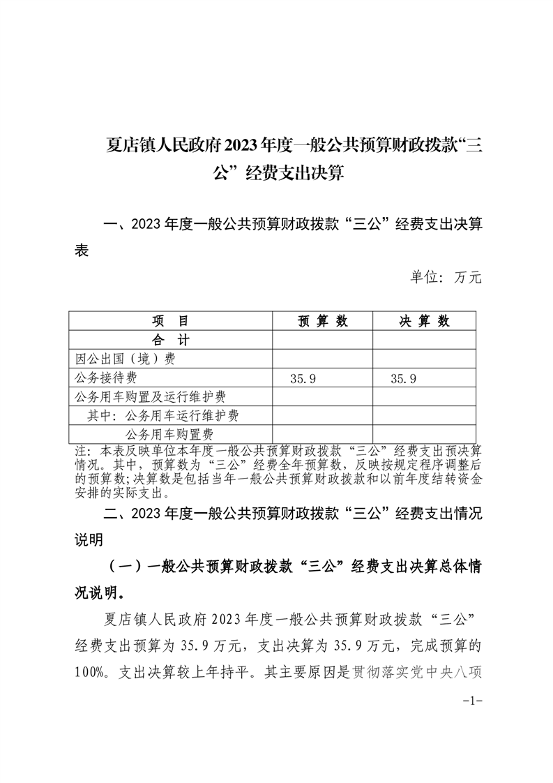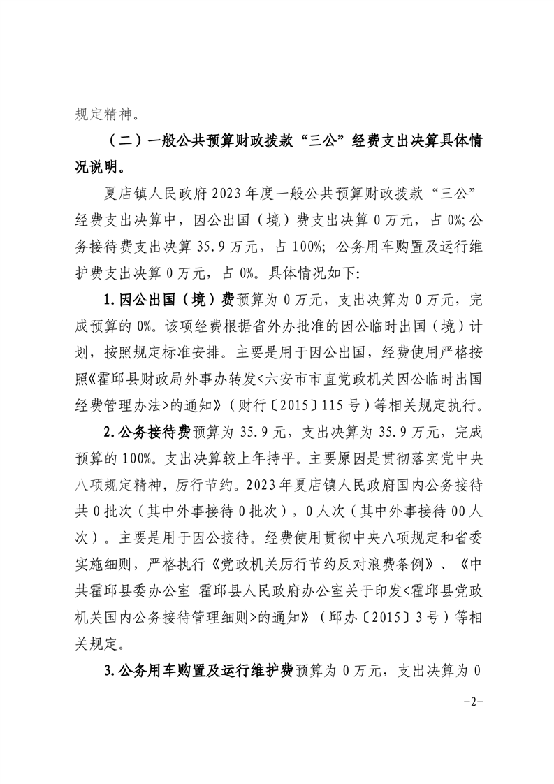 夏店镇人民政府2023年度一般公共预算“三公”经费支出决算