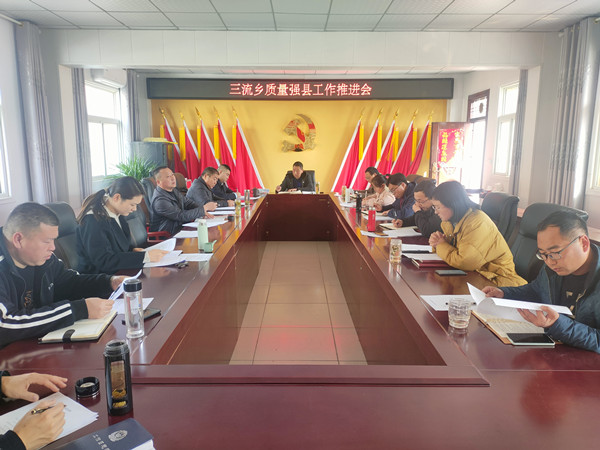 2023年2月28日上午,三流乡在乡党委会议室召开质量强县工作推进会,乡党委书记唐兵书主持,全体班子成员参加会议。