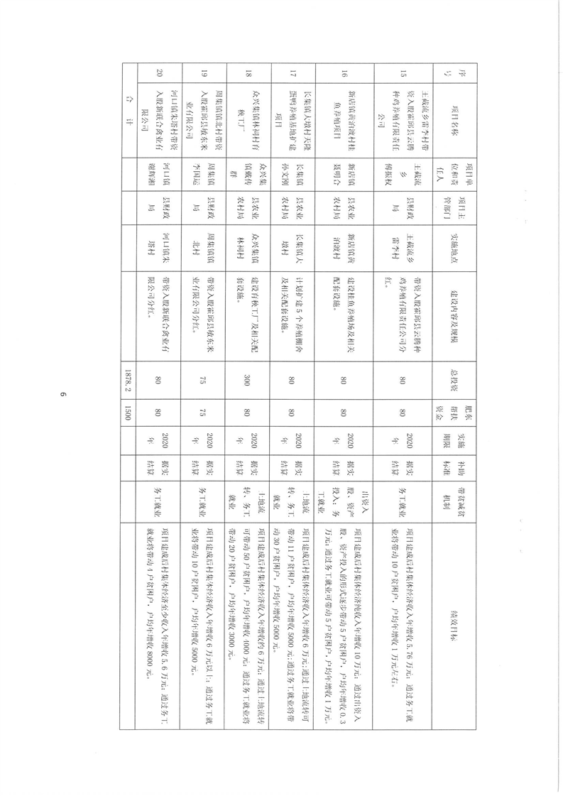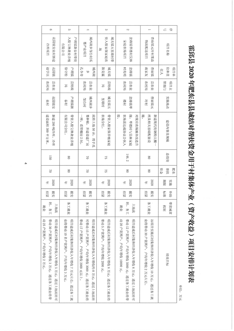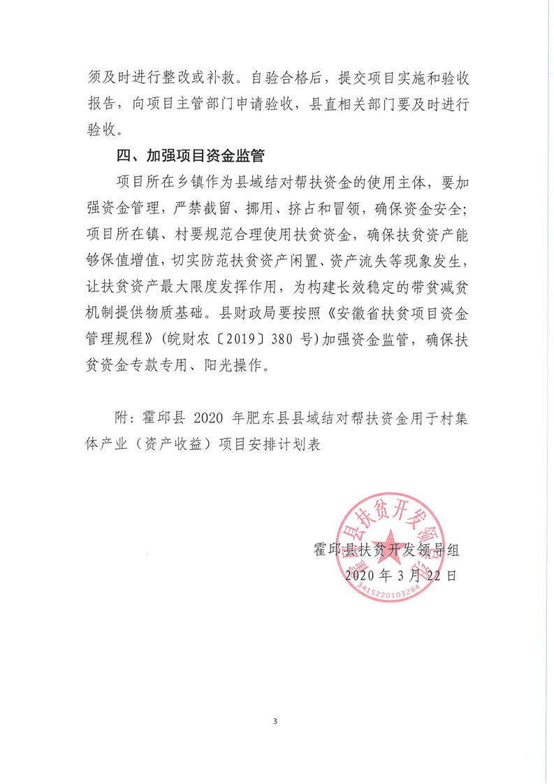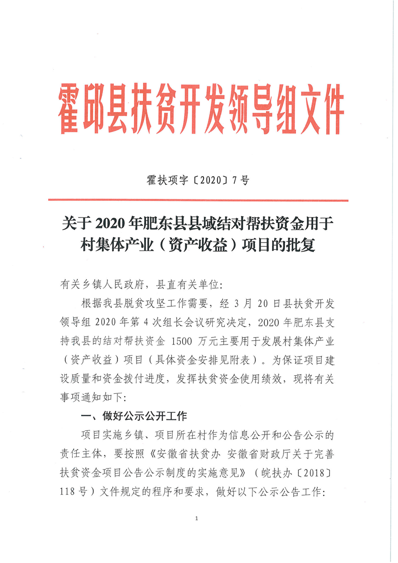 关于2020年肥东县县域结对帮扶资金用于村集体产业(资产收益)项目的批复 (含王截流乡)