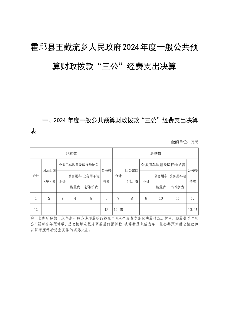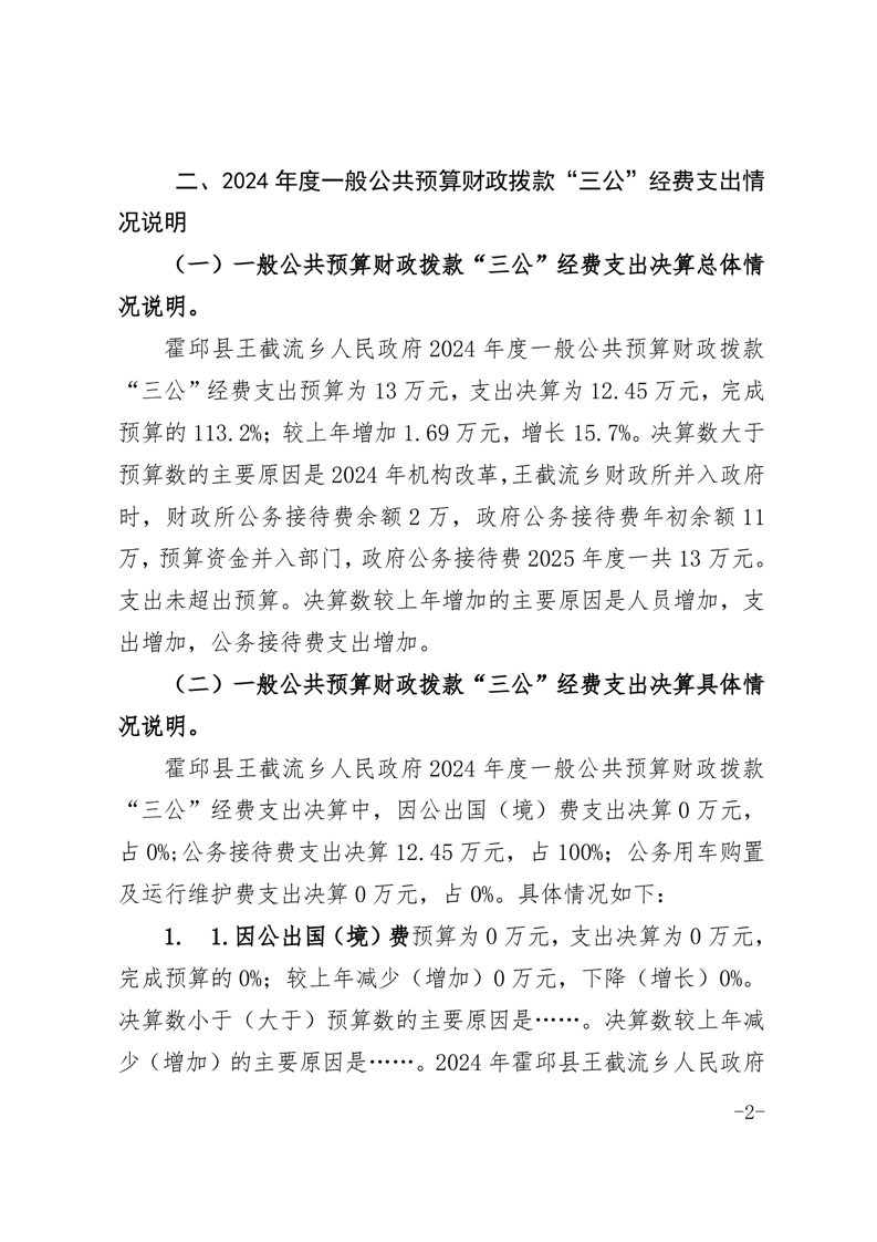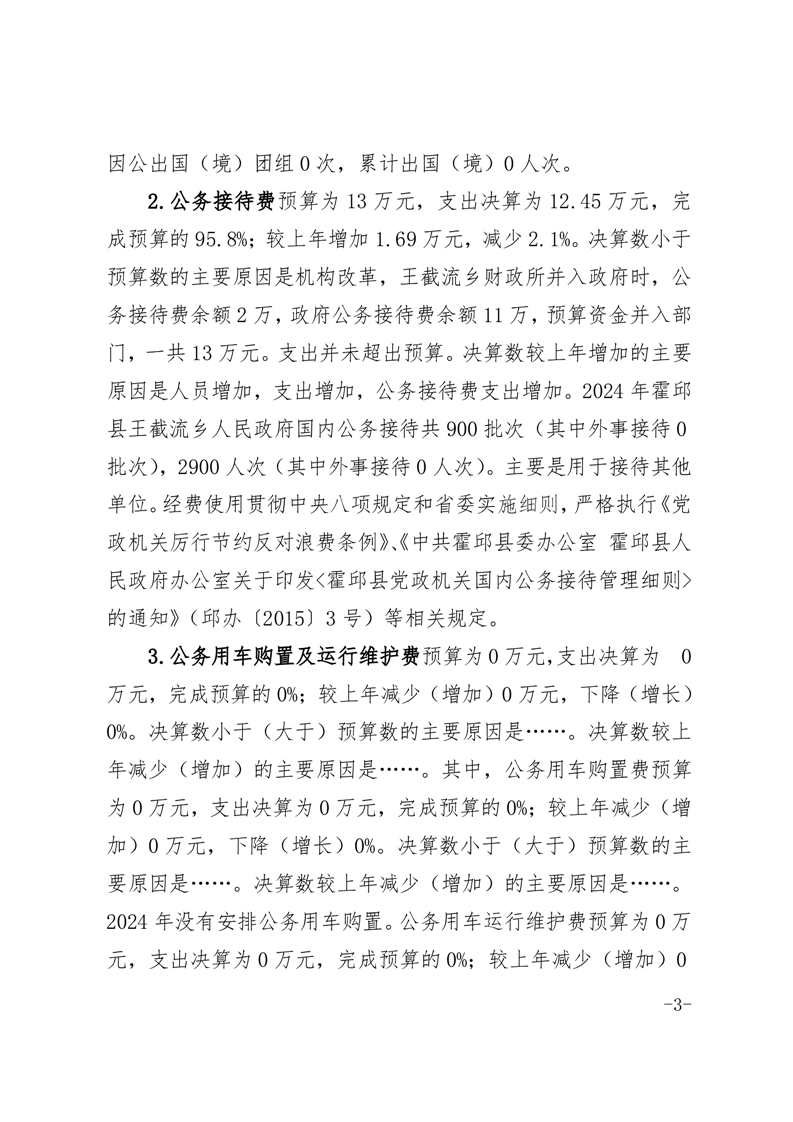 霍邱县王截流乡人民政府2024年度一般公共预算财政拨款“三公”经费支出决算