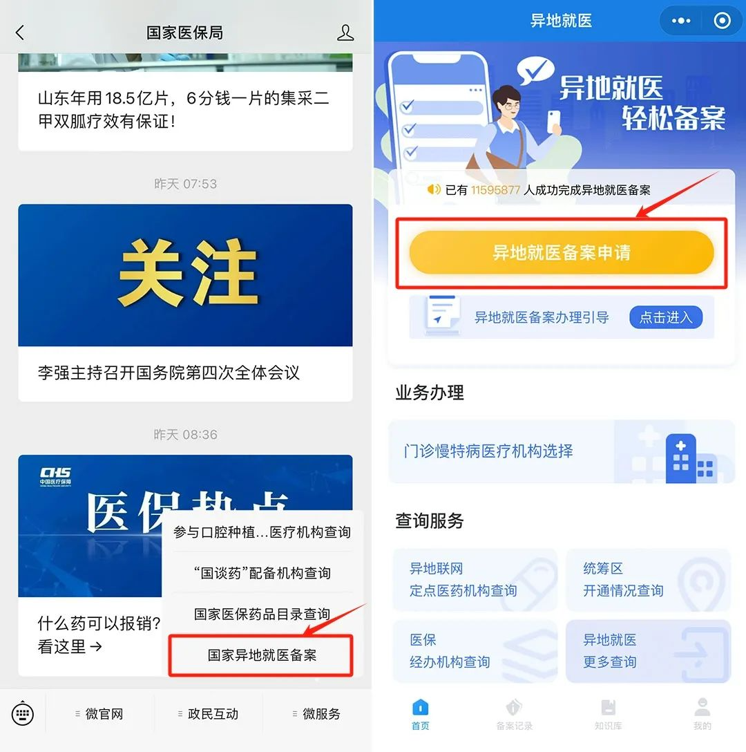 为了给参保人提供更为便捷的服务,国家医保局微信公众号目前已开通异地就医备案办理功能。符合条件的参保人只需简单几步操作,即可完成跨省异地就医备案,并在异地就医时实现直接结算。