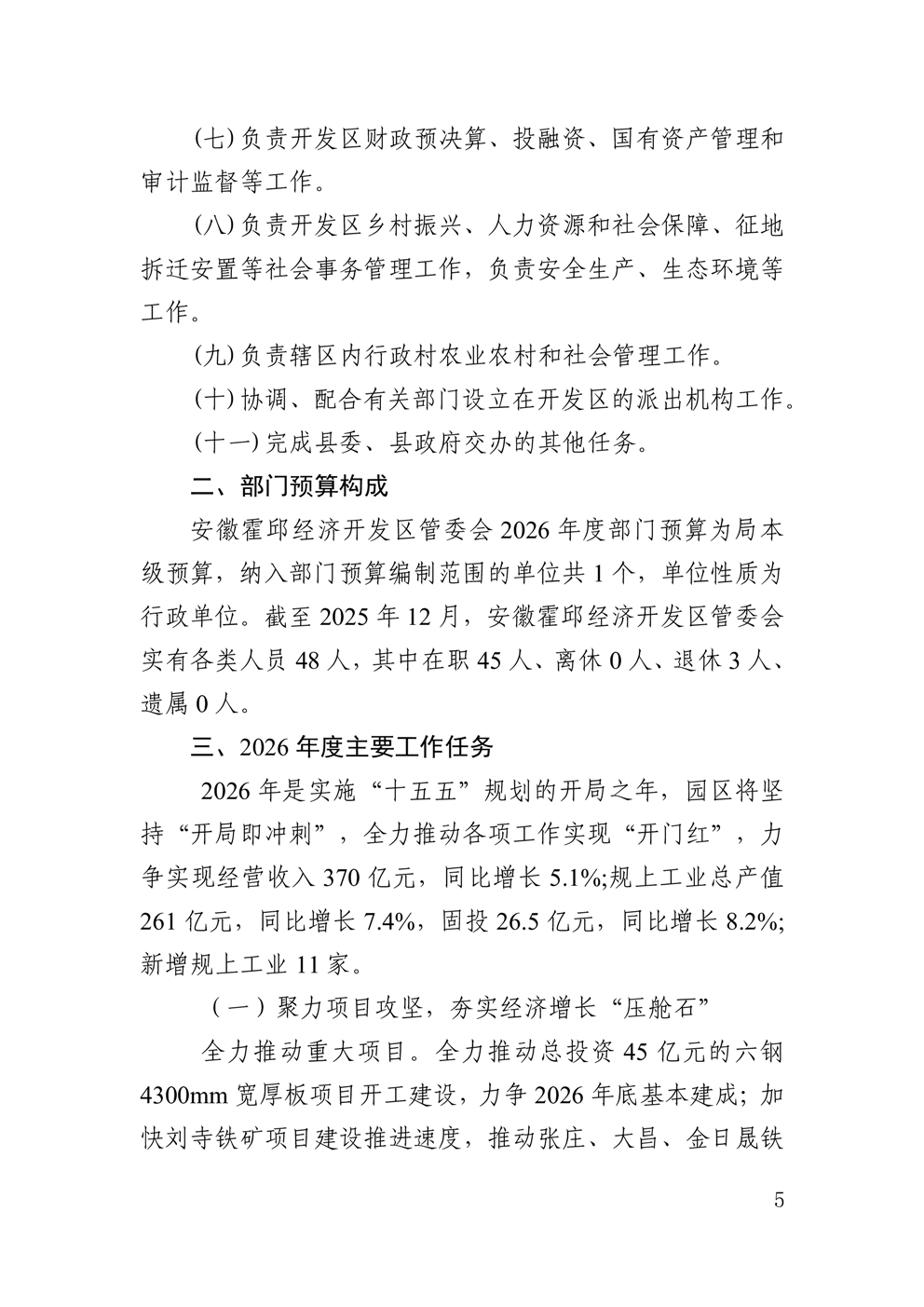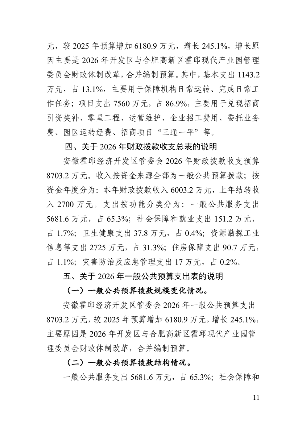 安徽霍邱经济开发区管委会2026年部门预算公开