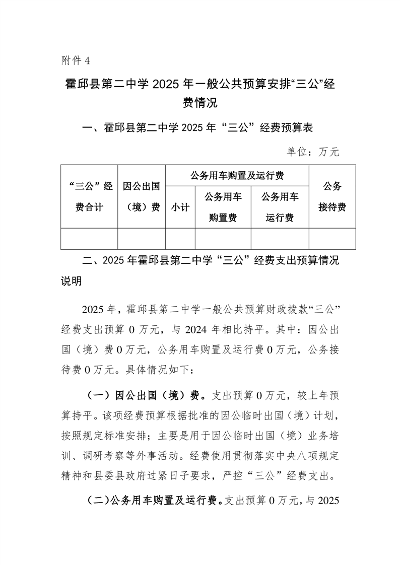 霍邱县第二中学2025年一般公共预算安排“三公”经费情况