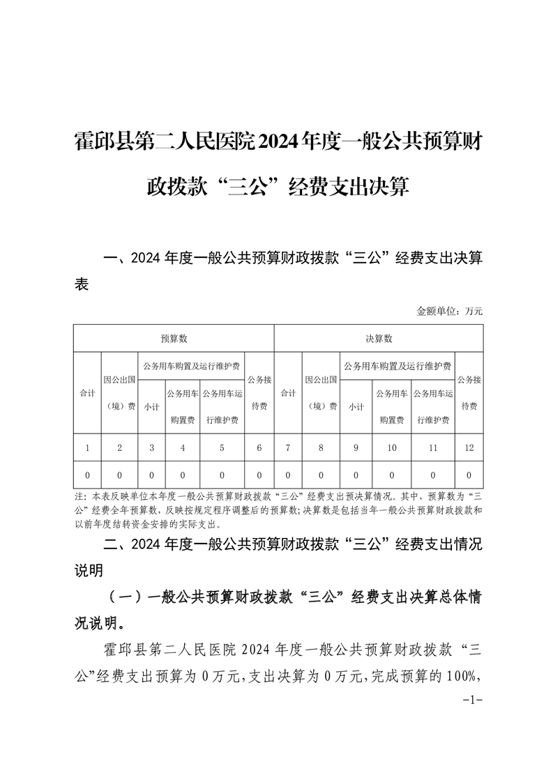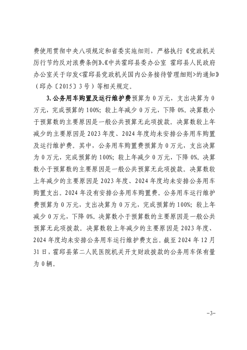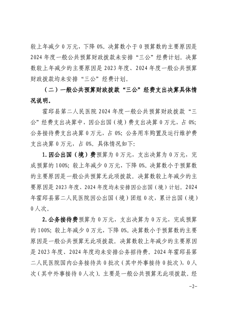 霍邱县第二人民医院2024年一般公共预算财政拨款“三公”经费支出决算
