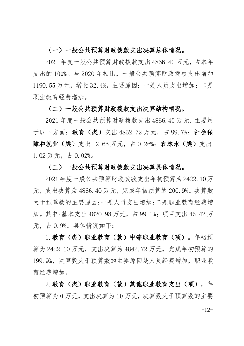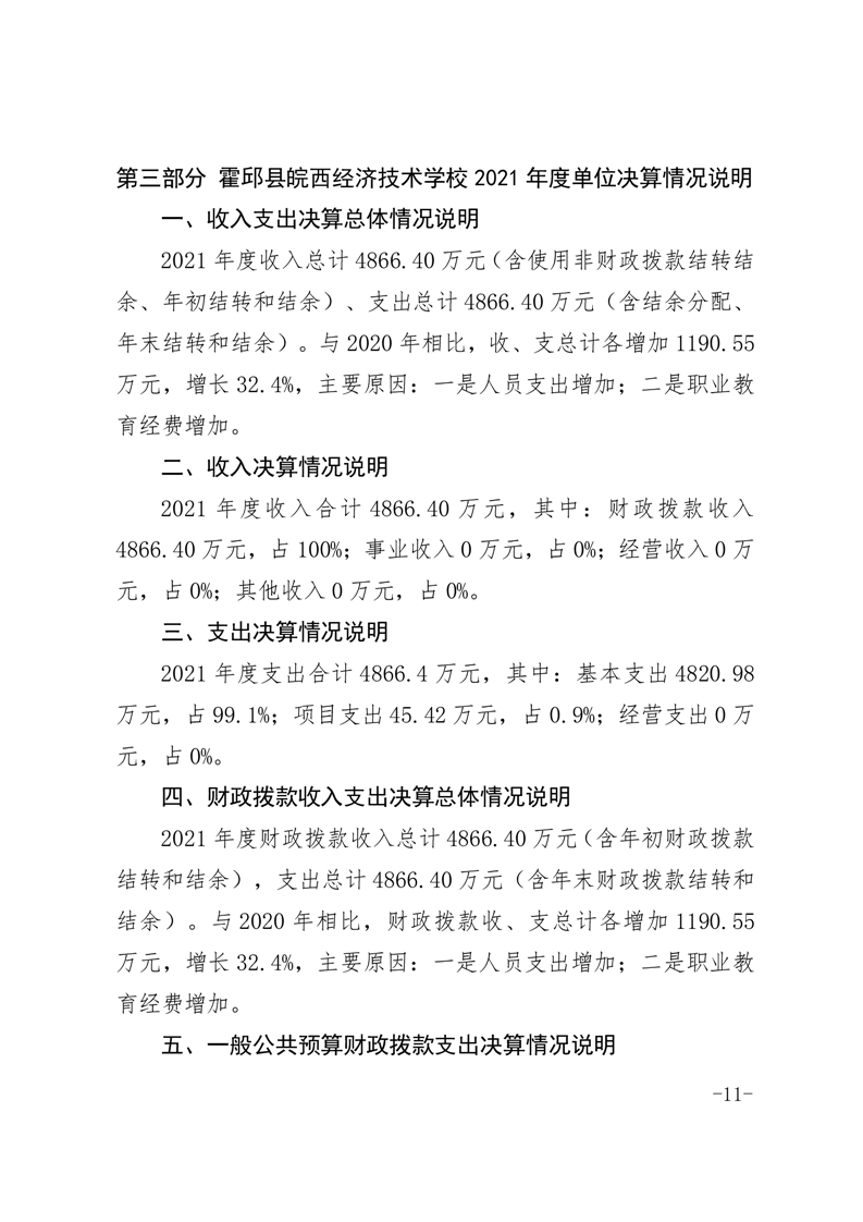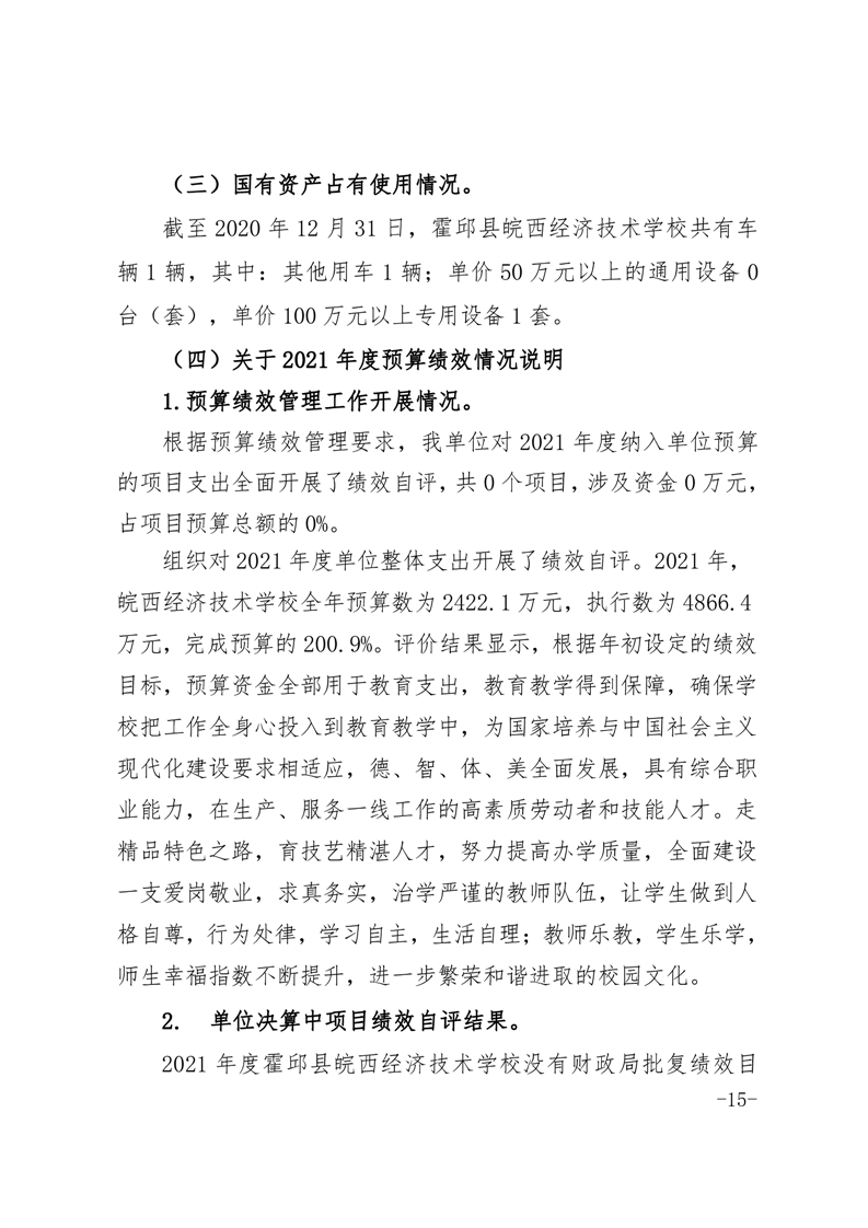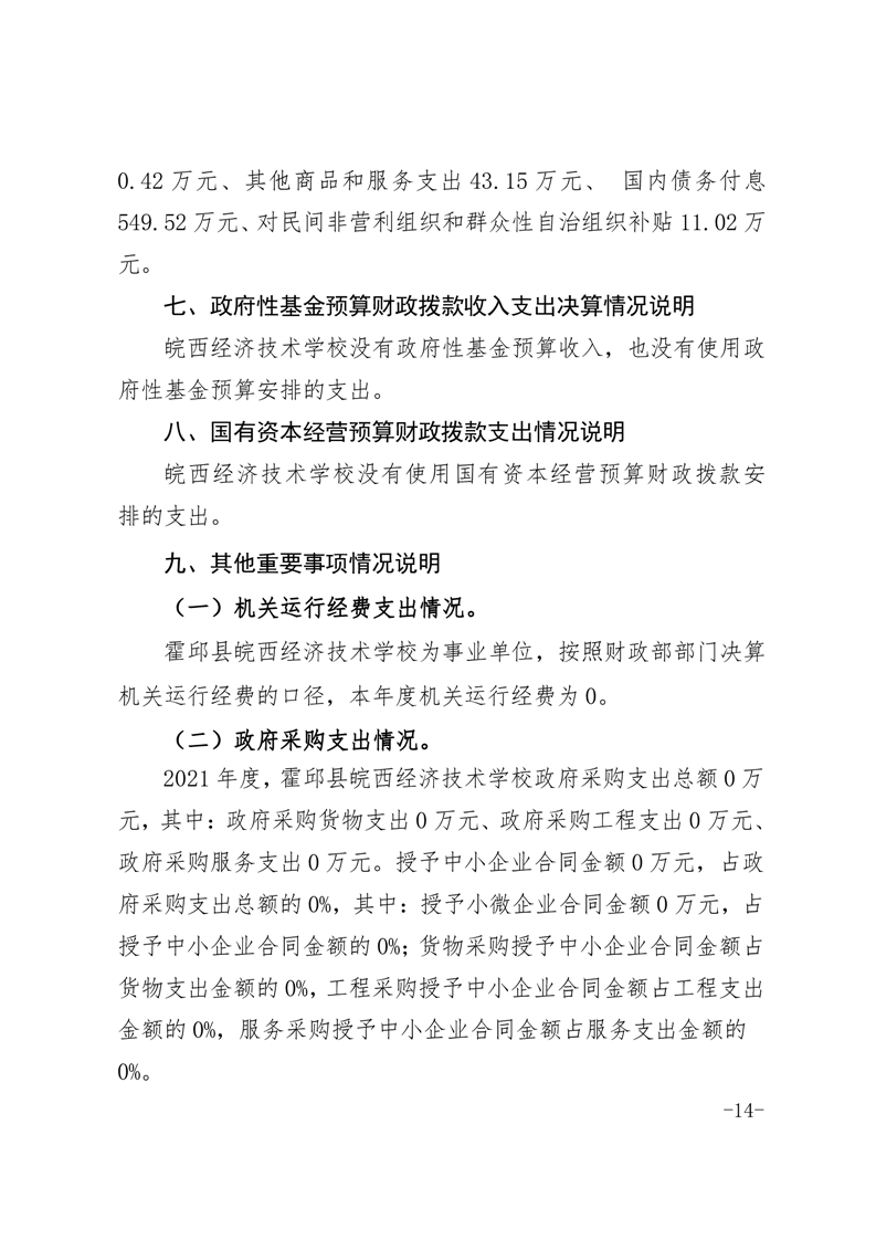 皖西经济技术学校2021年单位决算