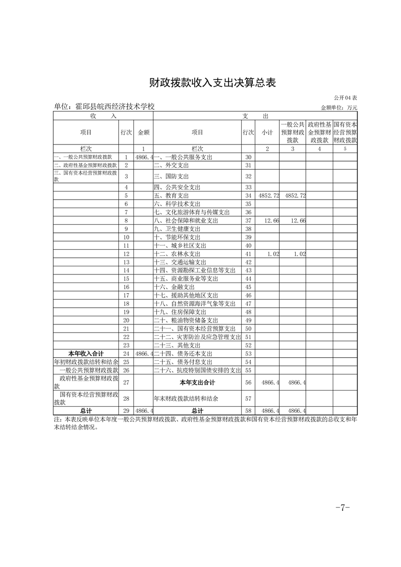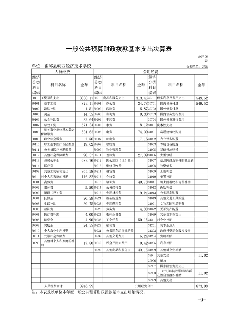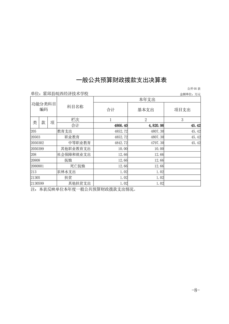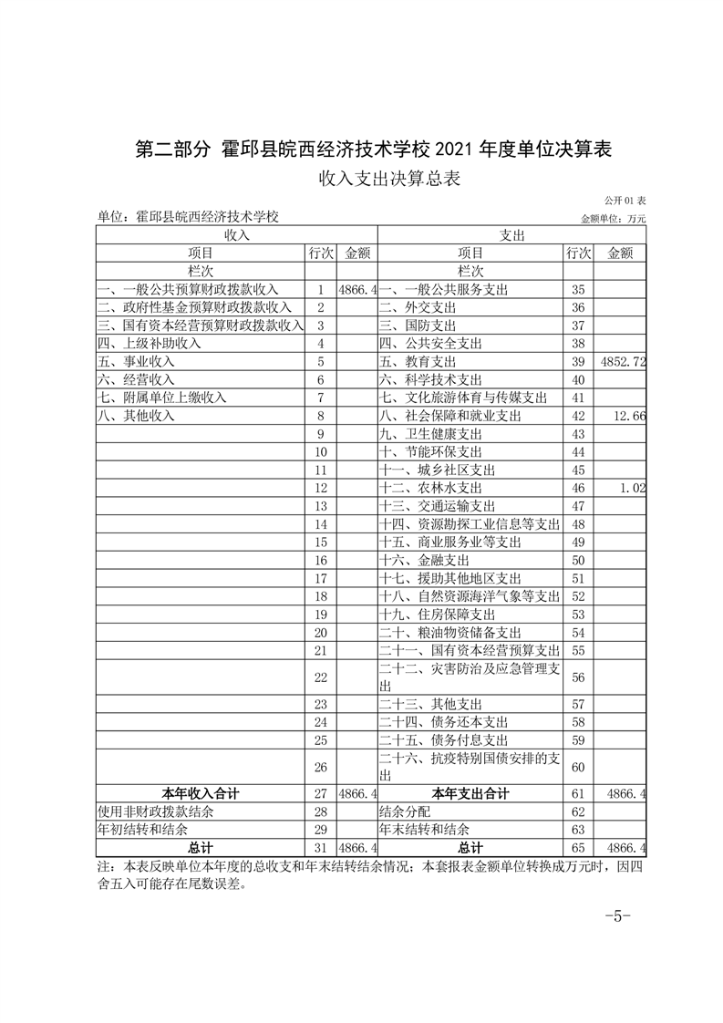 皖西经济技术学校2021年单位决算