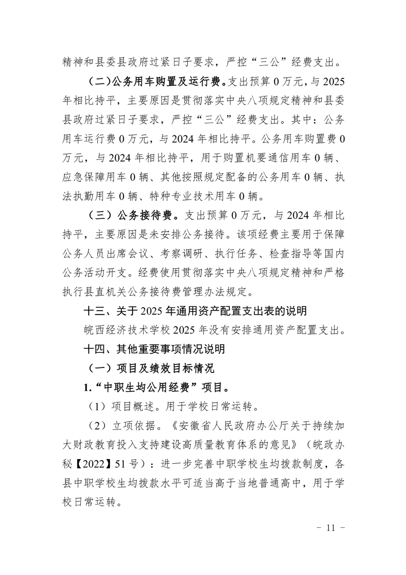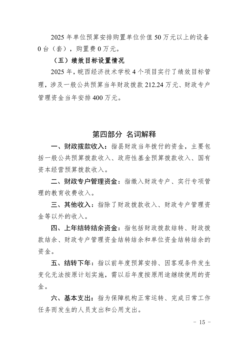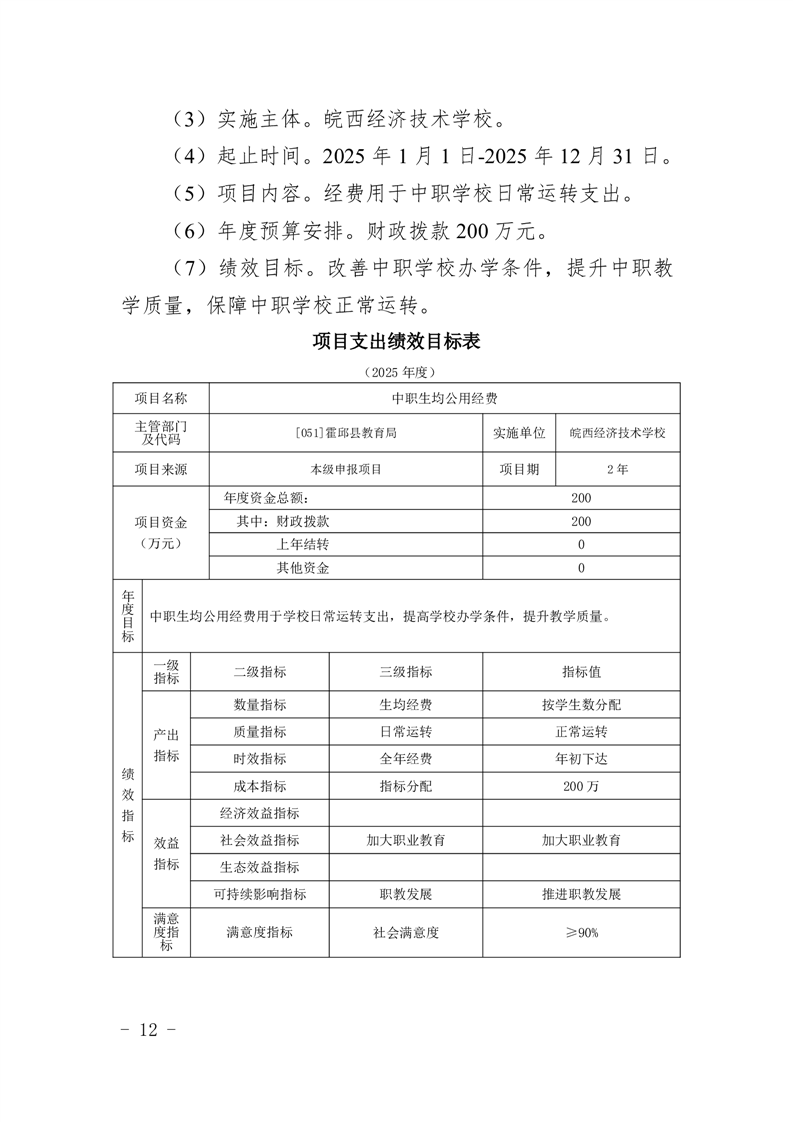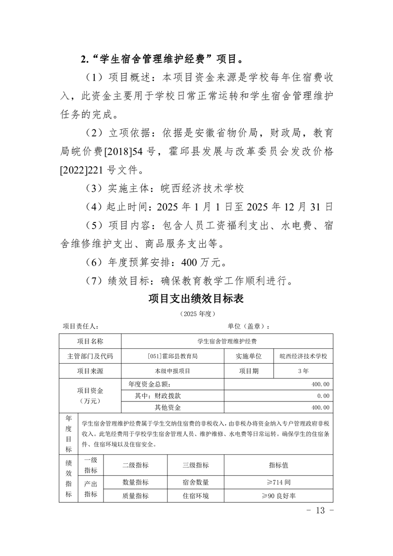 皖西经济技术学校2025年单位项目支出绩效目标公开.pdf
