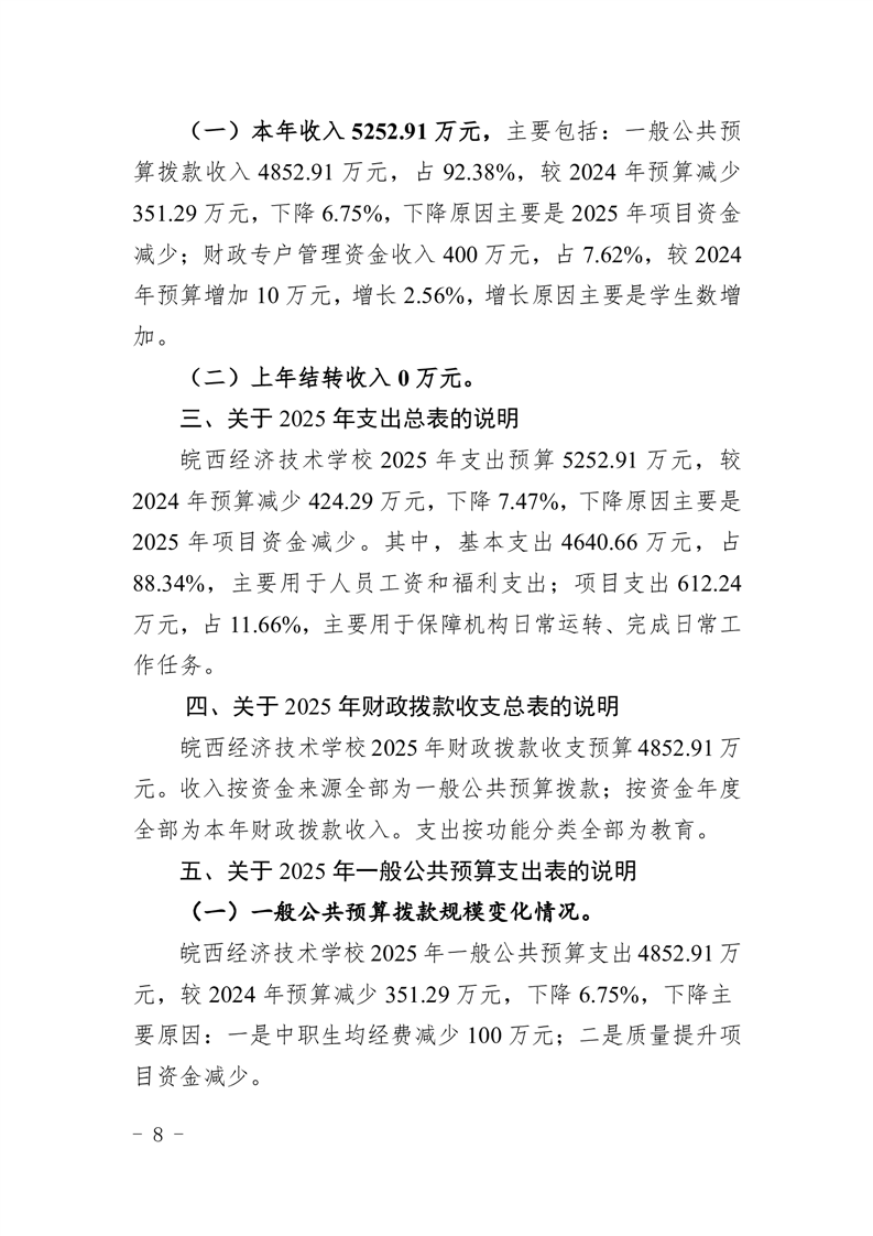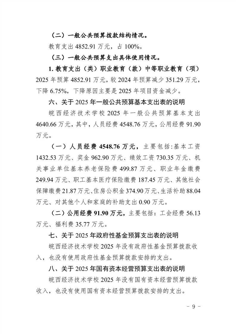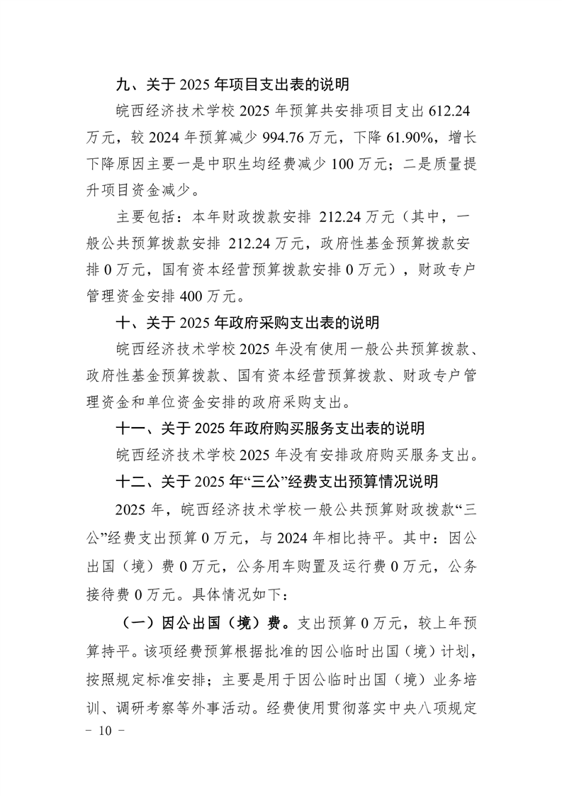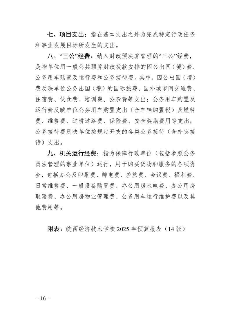 皖西经济技术学校2025年单位项目支出绩效目标公开.pdf