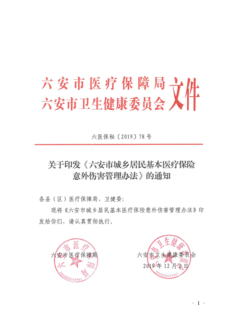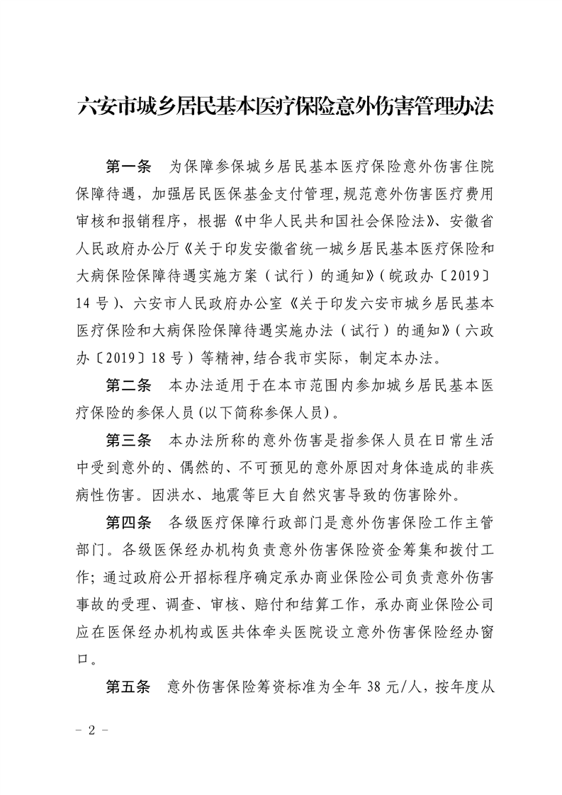 六安市城乡居民基本医疗保险意外伤害管理办法(六医保秘〔2019〕78号联合发文)
