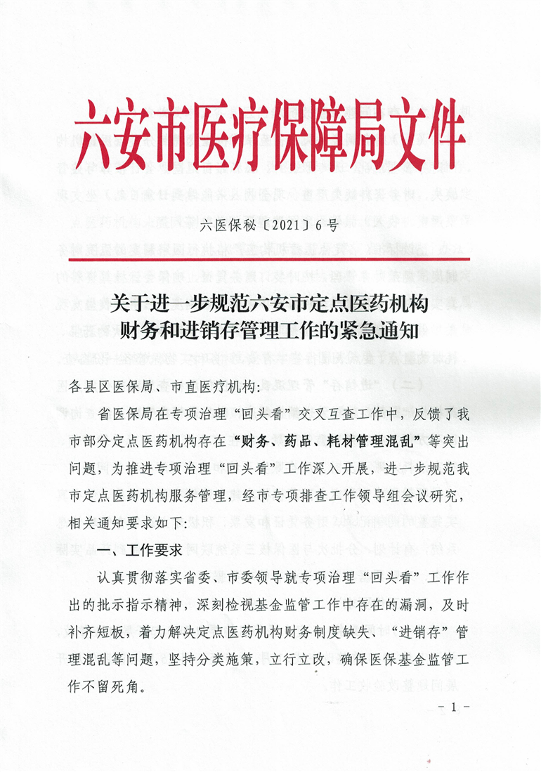 关于进一步规范六安市定点医药机构财务和进销存管理的紧急通知