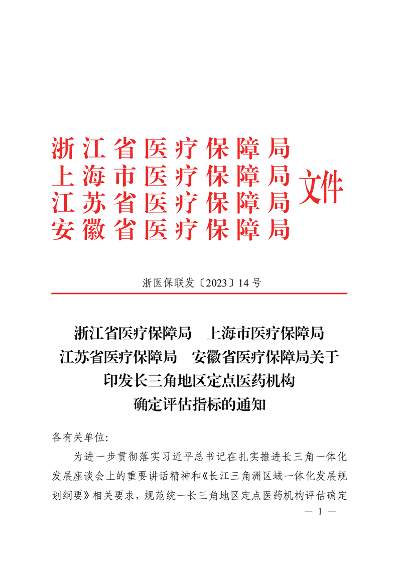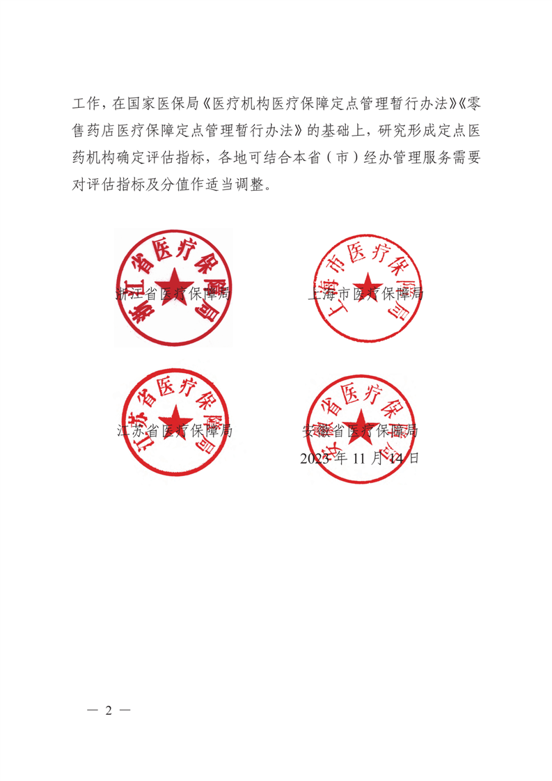 浙江省医疗保障局 上海市医疗保障局 江苏省医疗保障局 安徽省医疗保障局关于印发长三角地区定点医药机构确定评估指标的通知