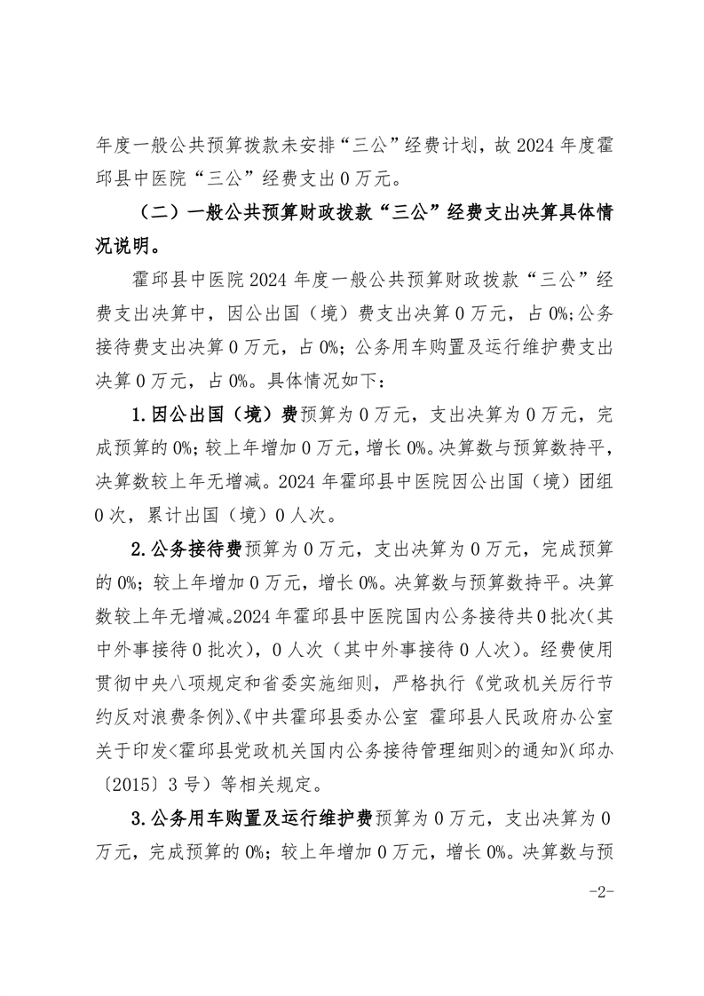 霍邱县中医院2024年度一般公共预算财政拨款“三公”经费支出决算