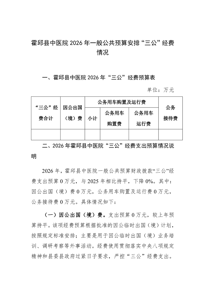 2026年霍邱县中医院一般公共预算安排“三公”经费情况