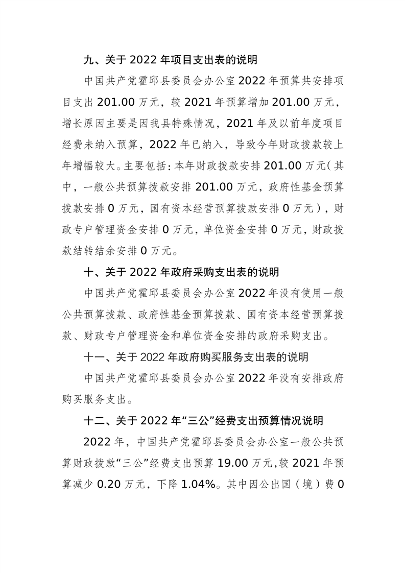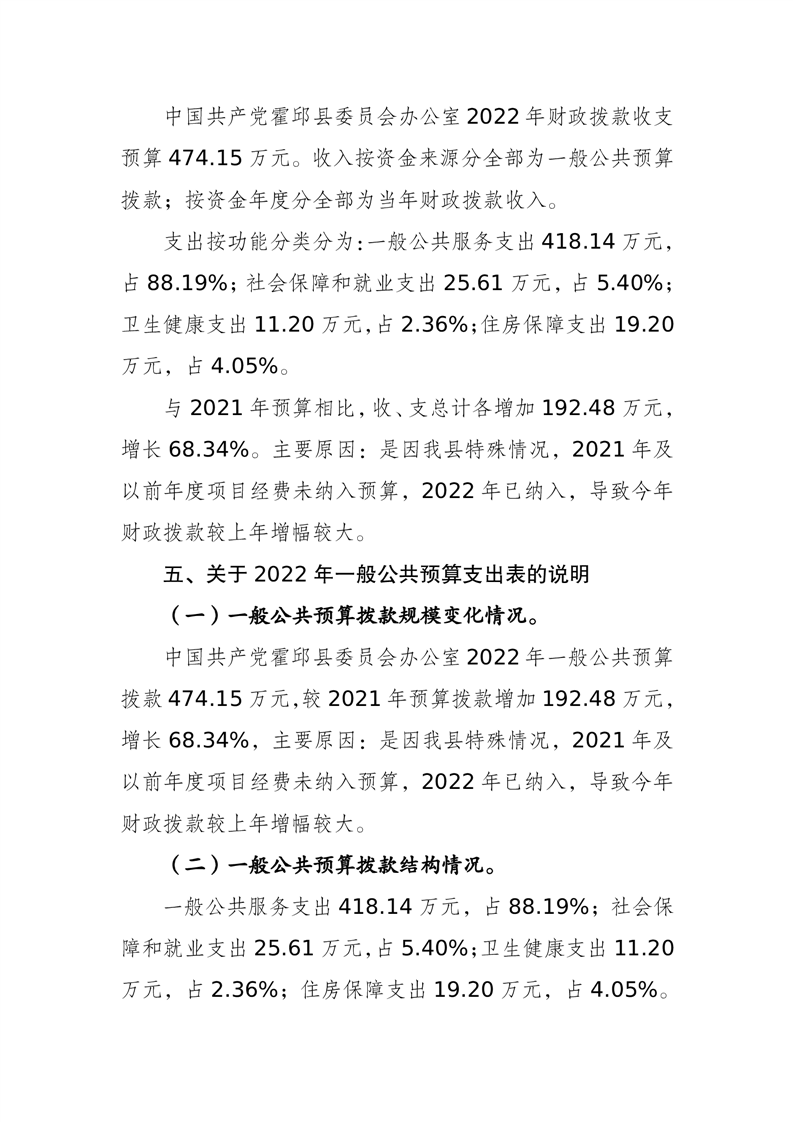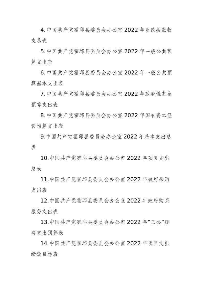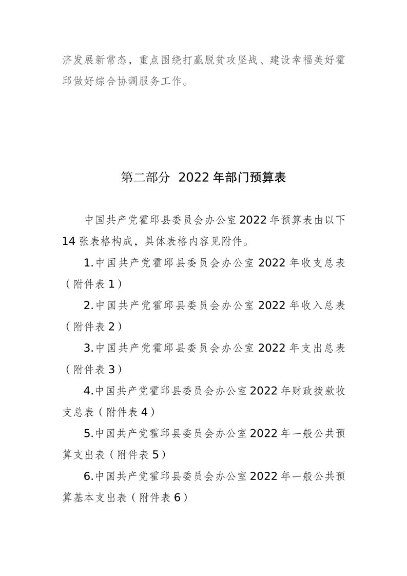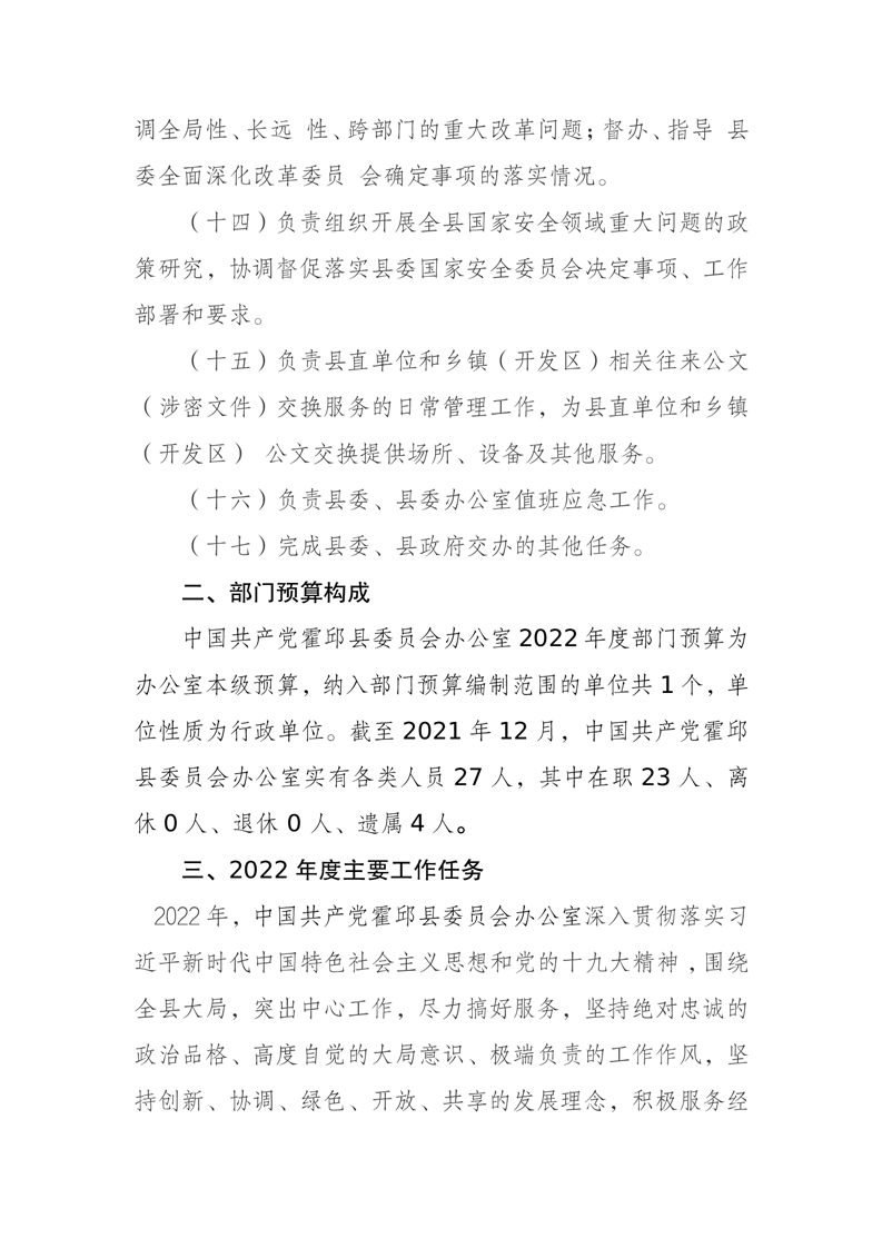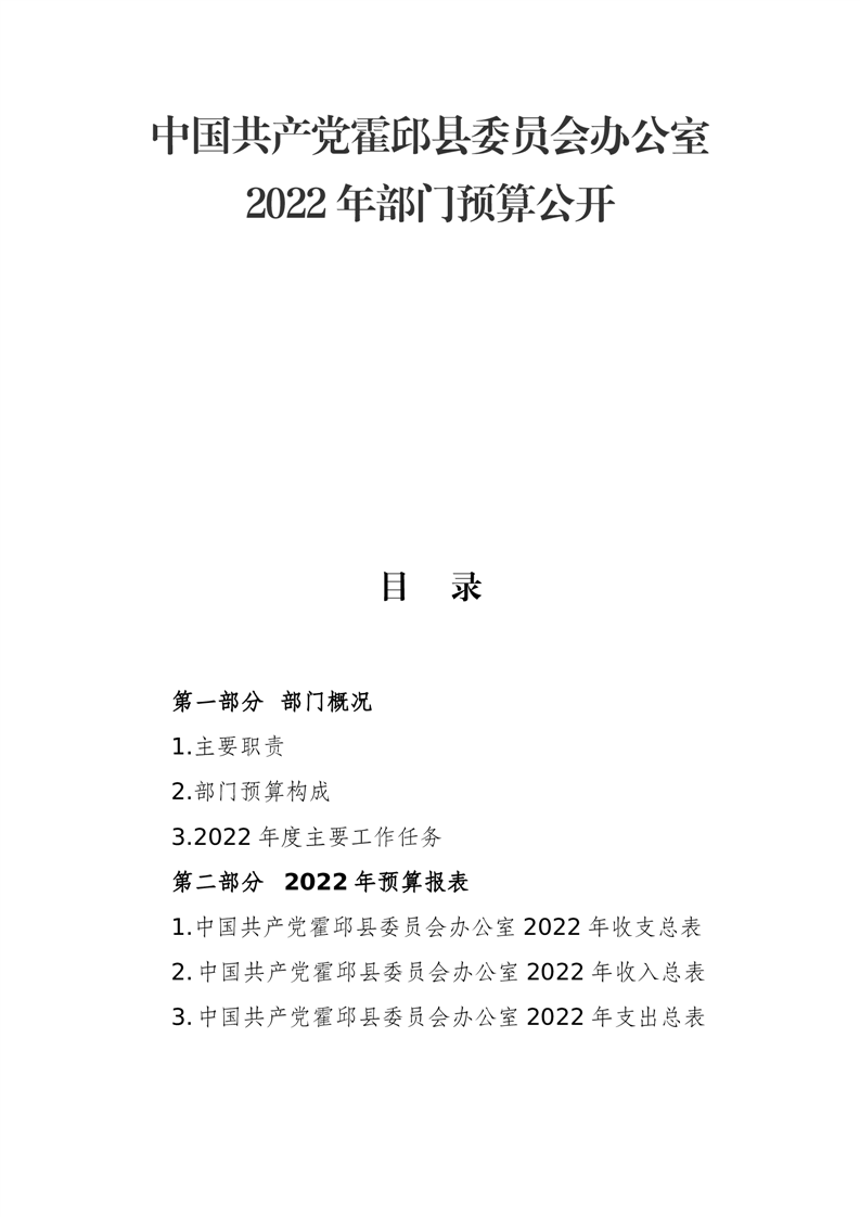 中国共产党霍邱县委员会办公室2022年部门预算公开