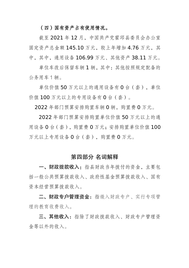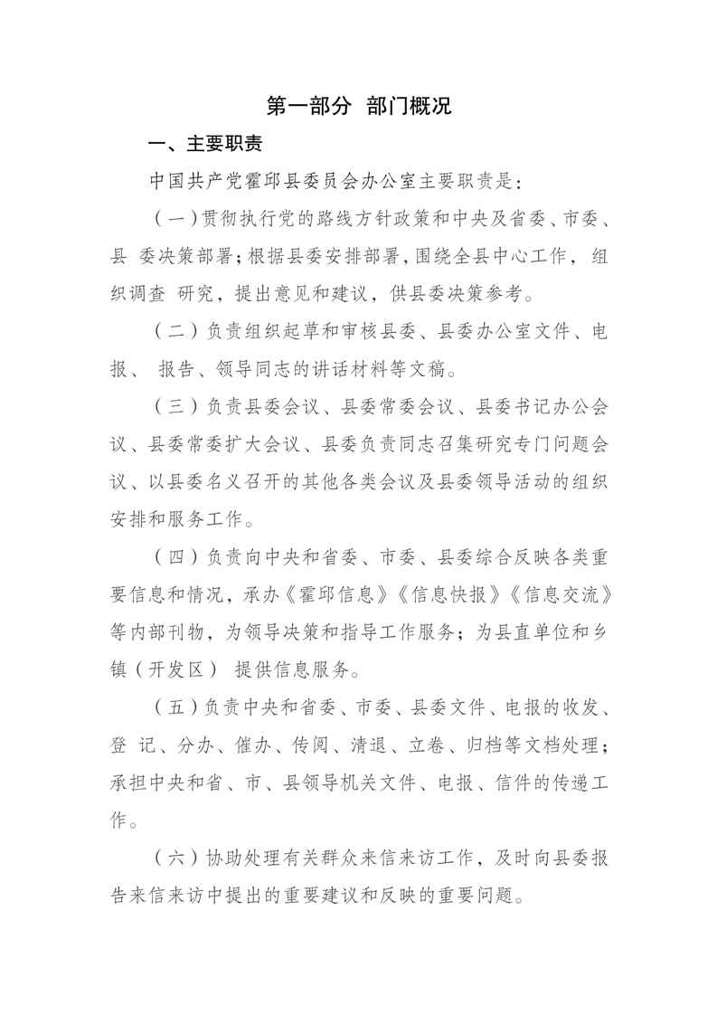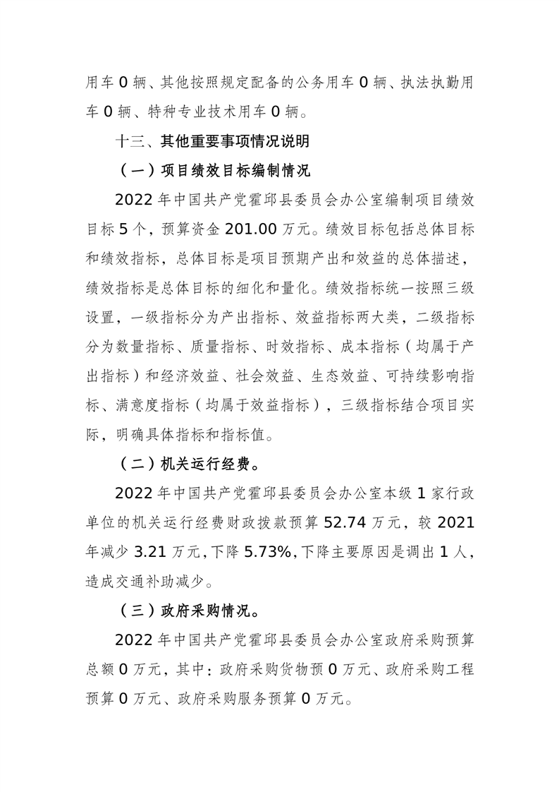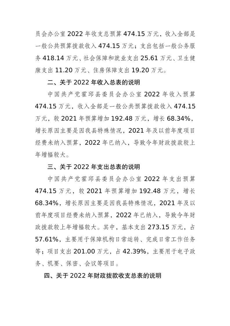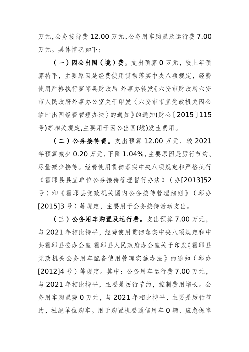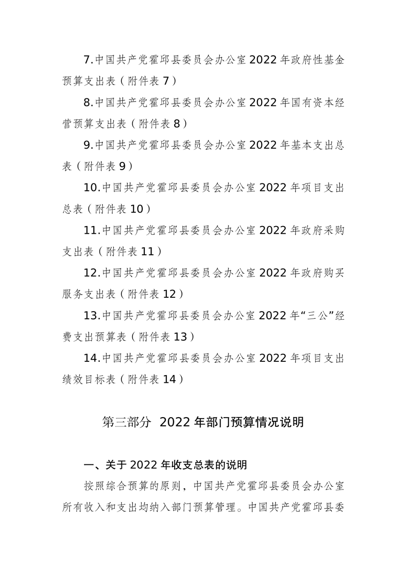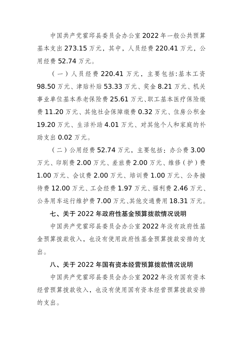 中国共产党霍邱县委员会办公室2022年部门预算公开