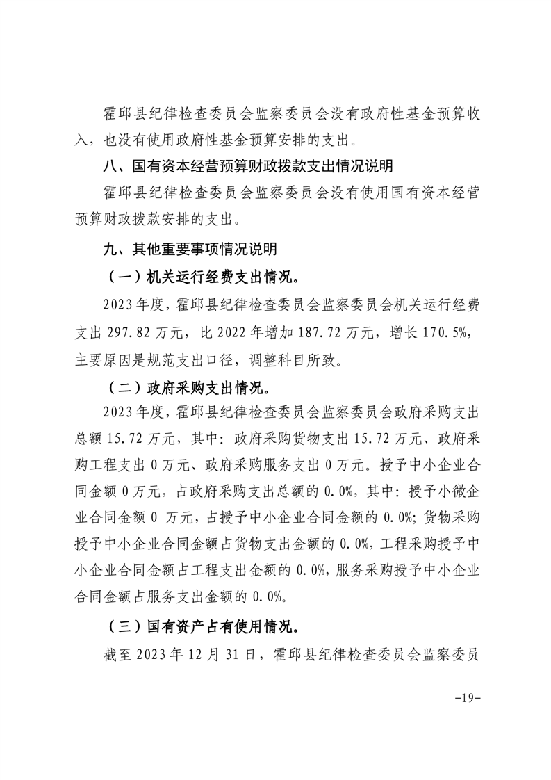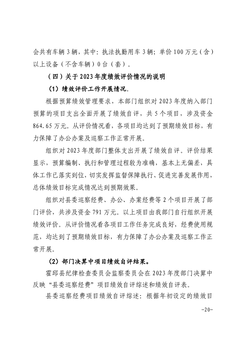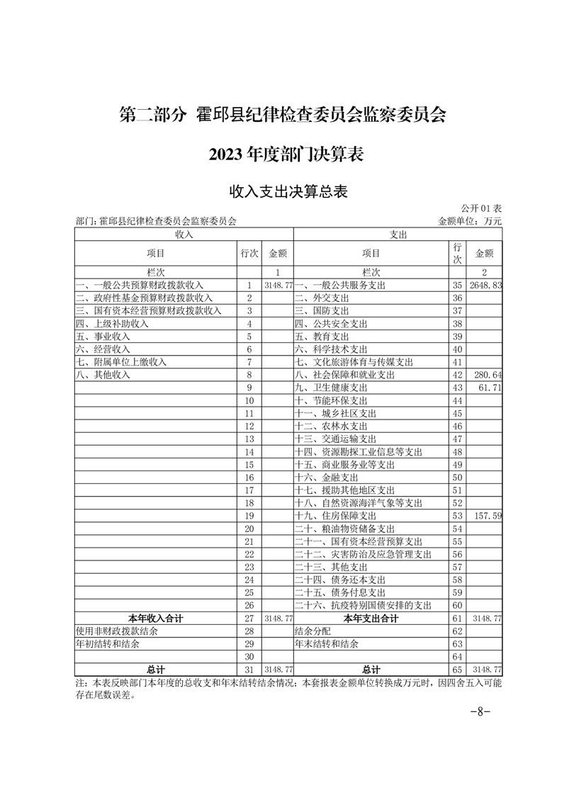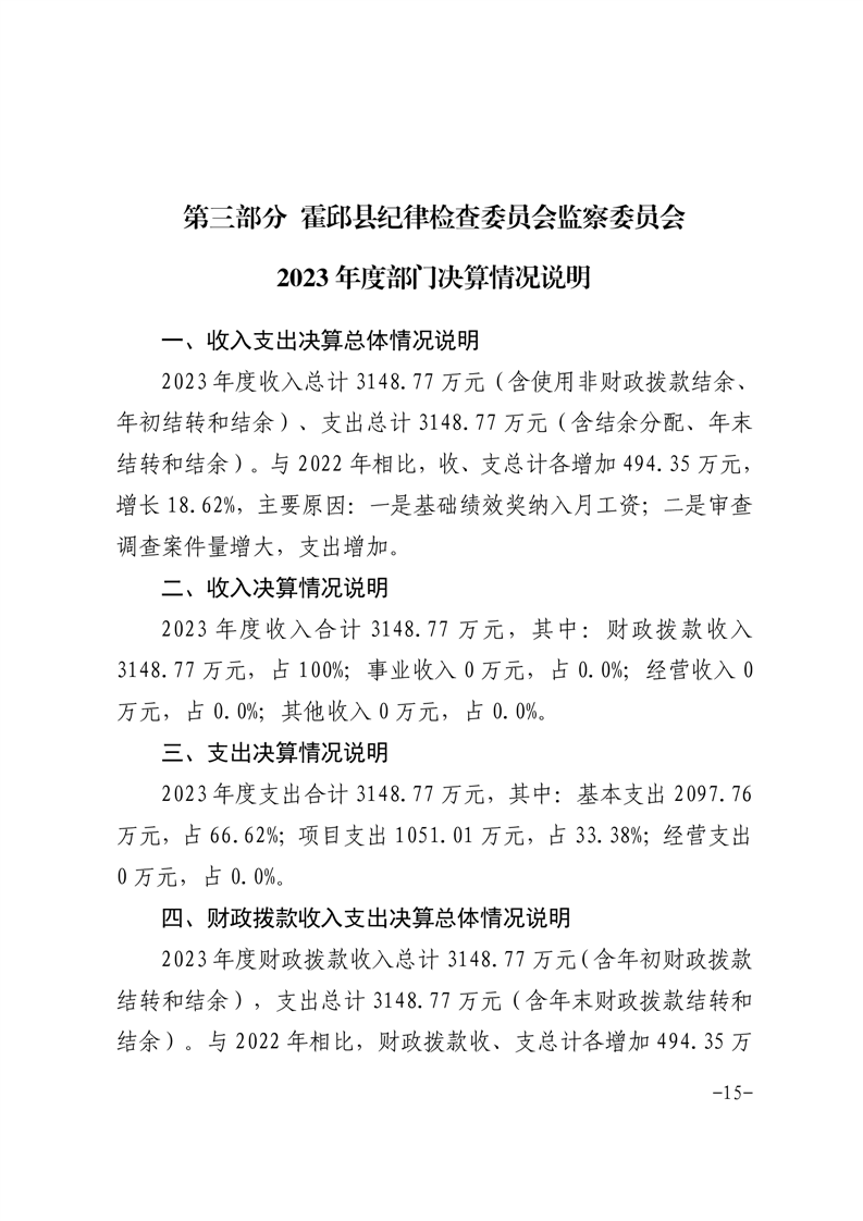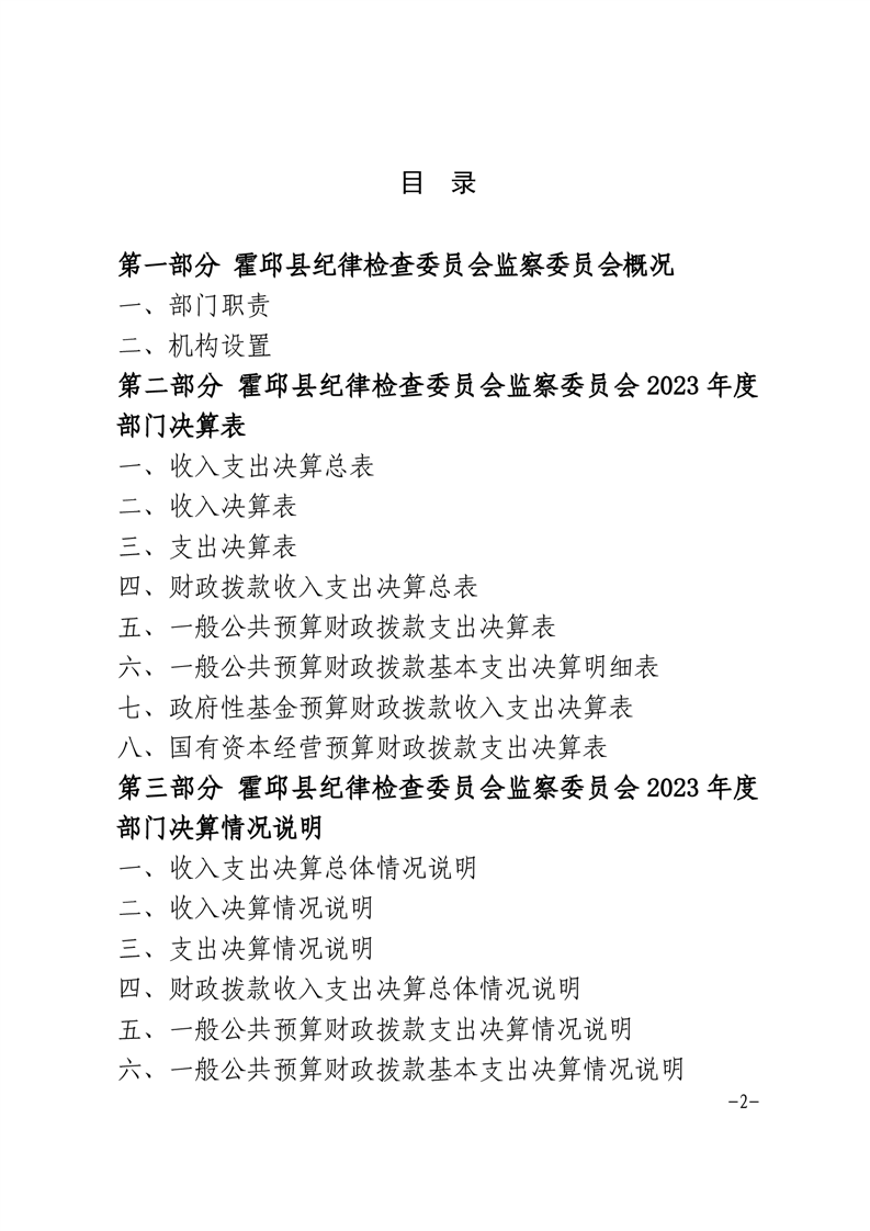 霍邱县纪律检查委员会监察委员会2023年度部门决算