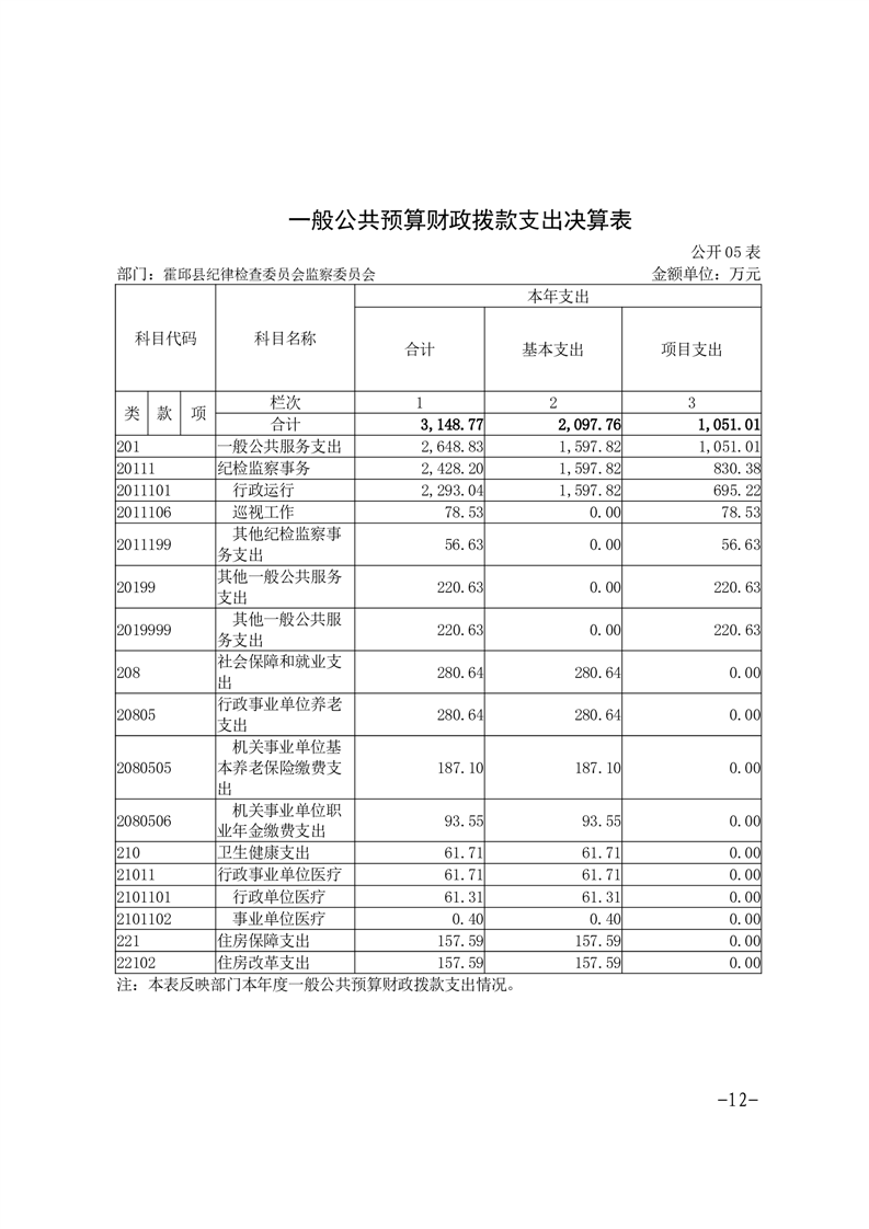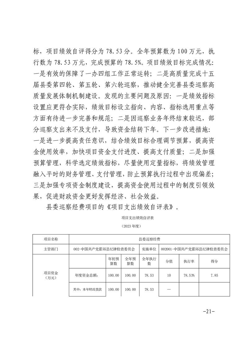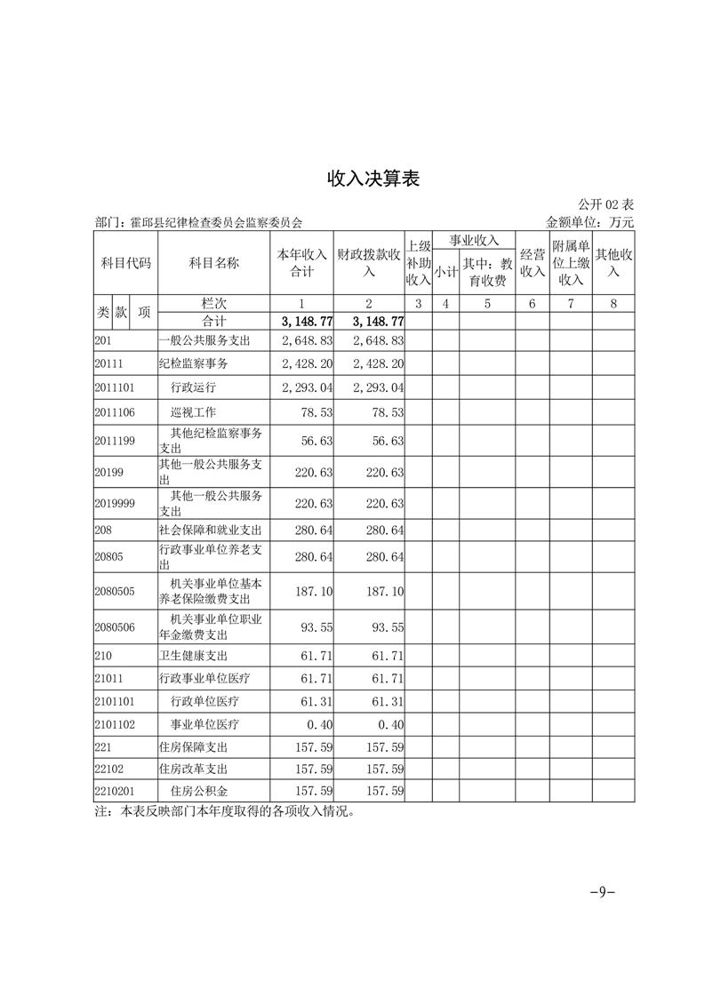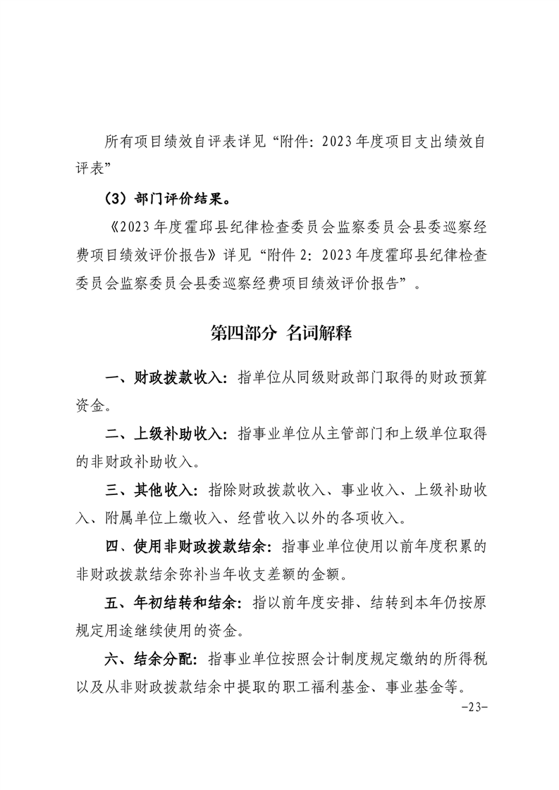 霍邱县纪律检查委员会监察委员会2023年度部门决算