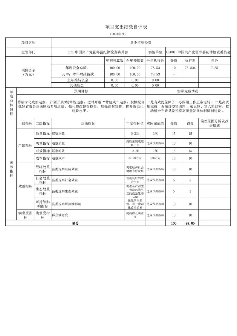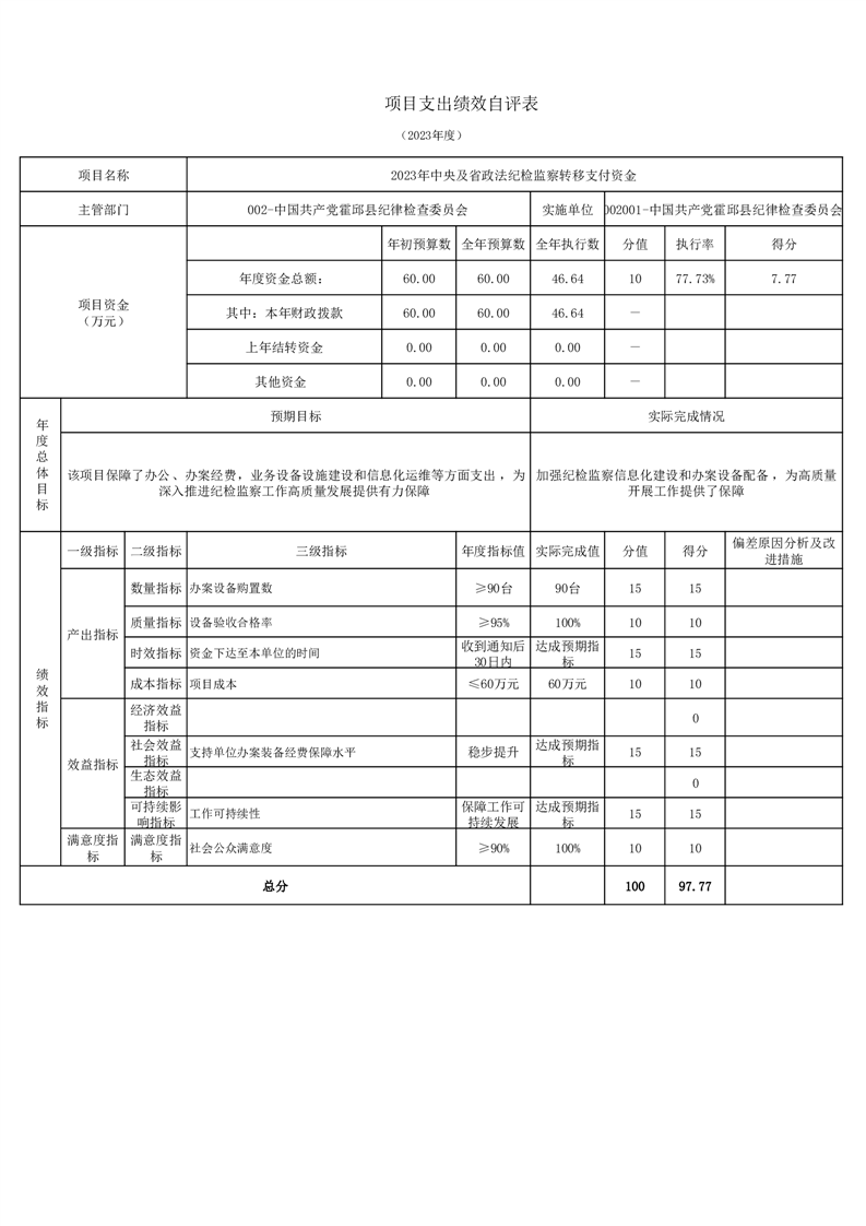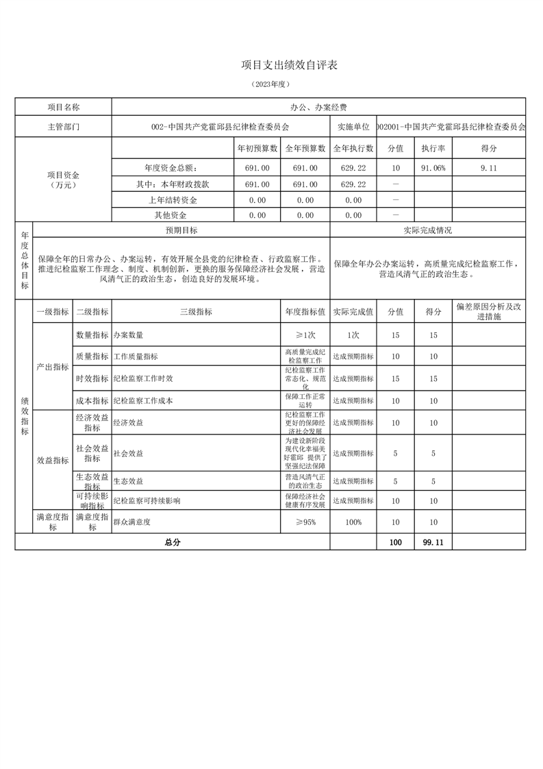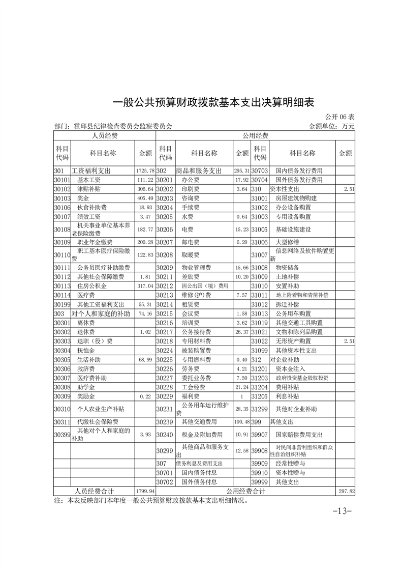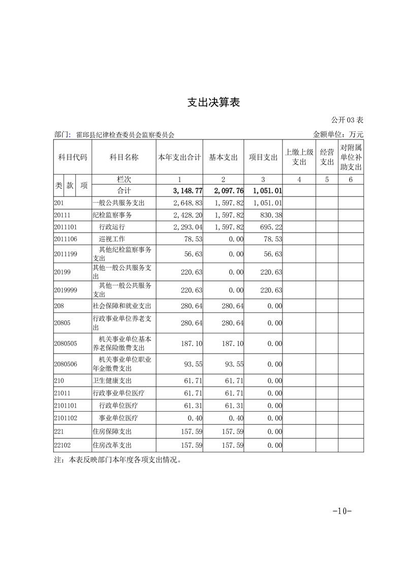霍邱县纪律检查委员会监察委员会2023年度部门决算