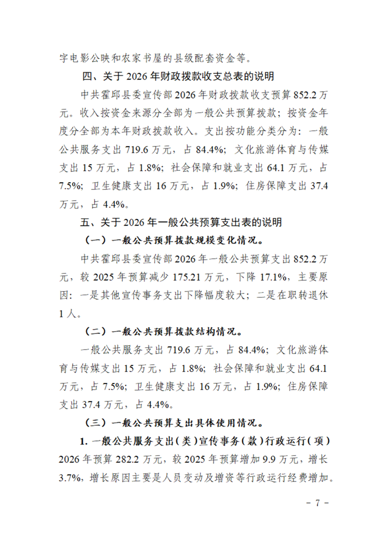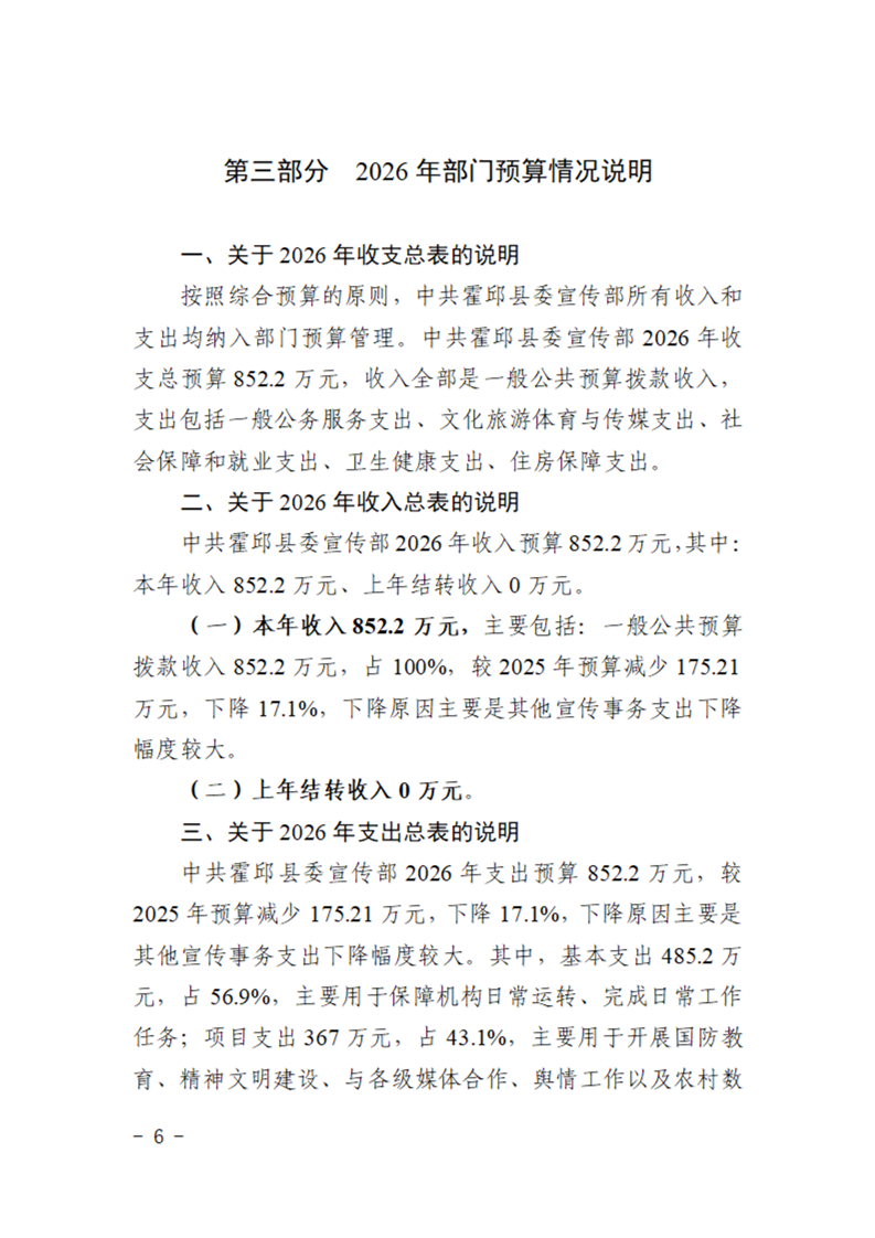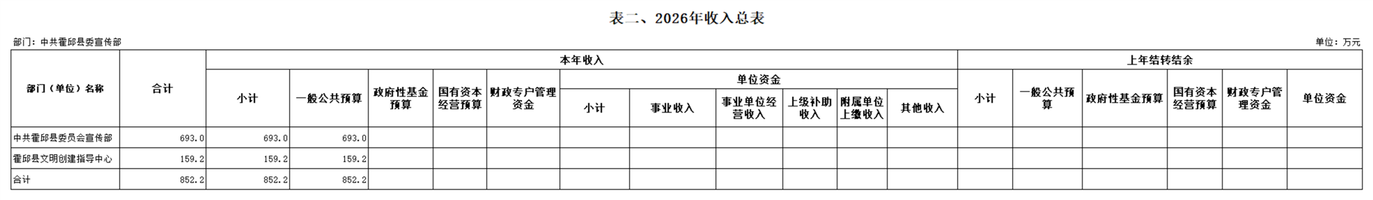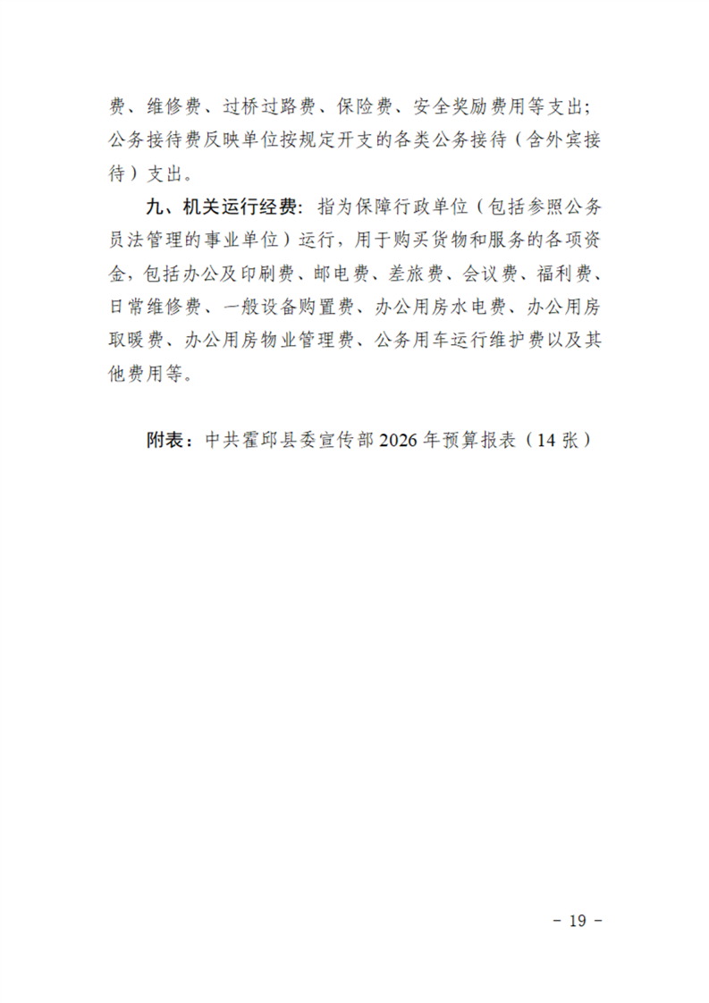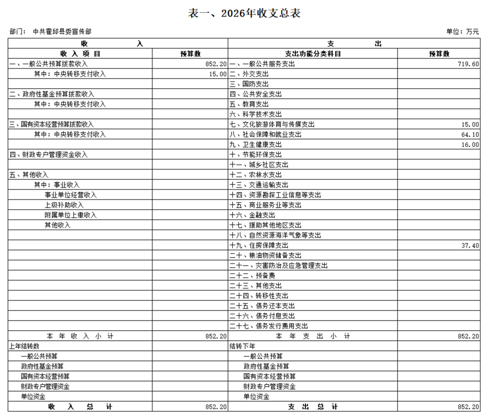 中共霍邱县委宣传部本级2026年单位预算公开