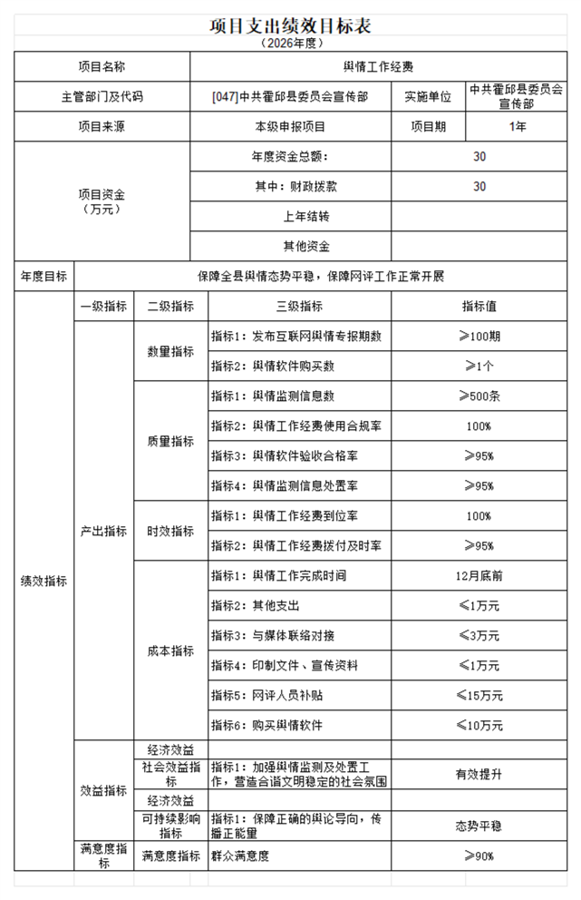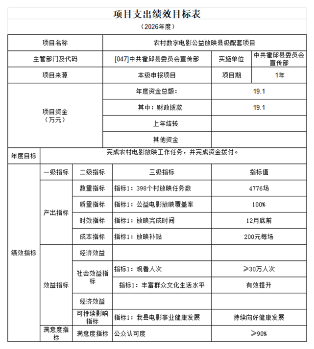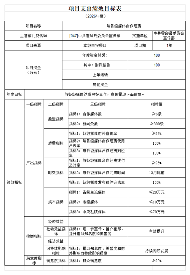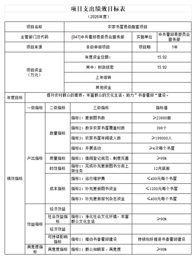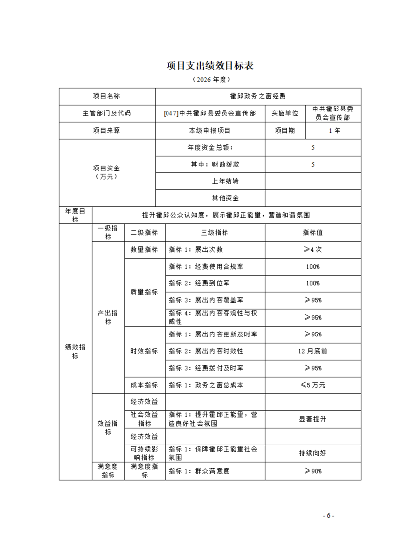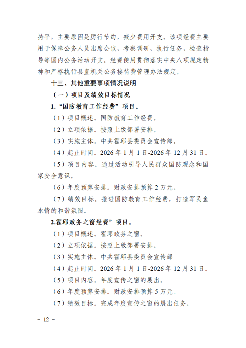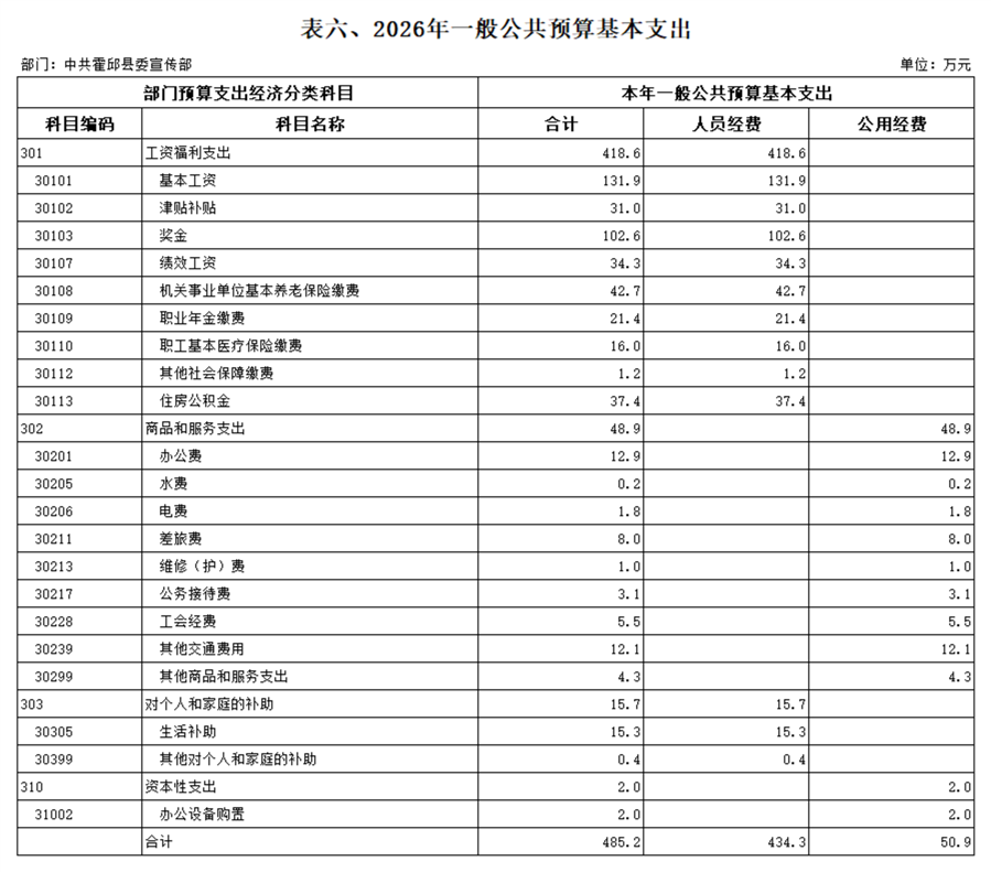 中共霍邱县委宣传部本级2026年单位预算公开