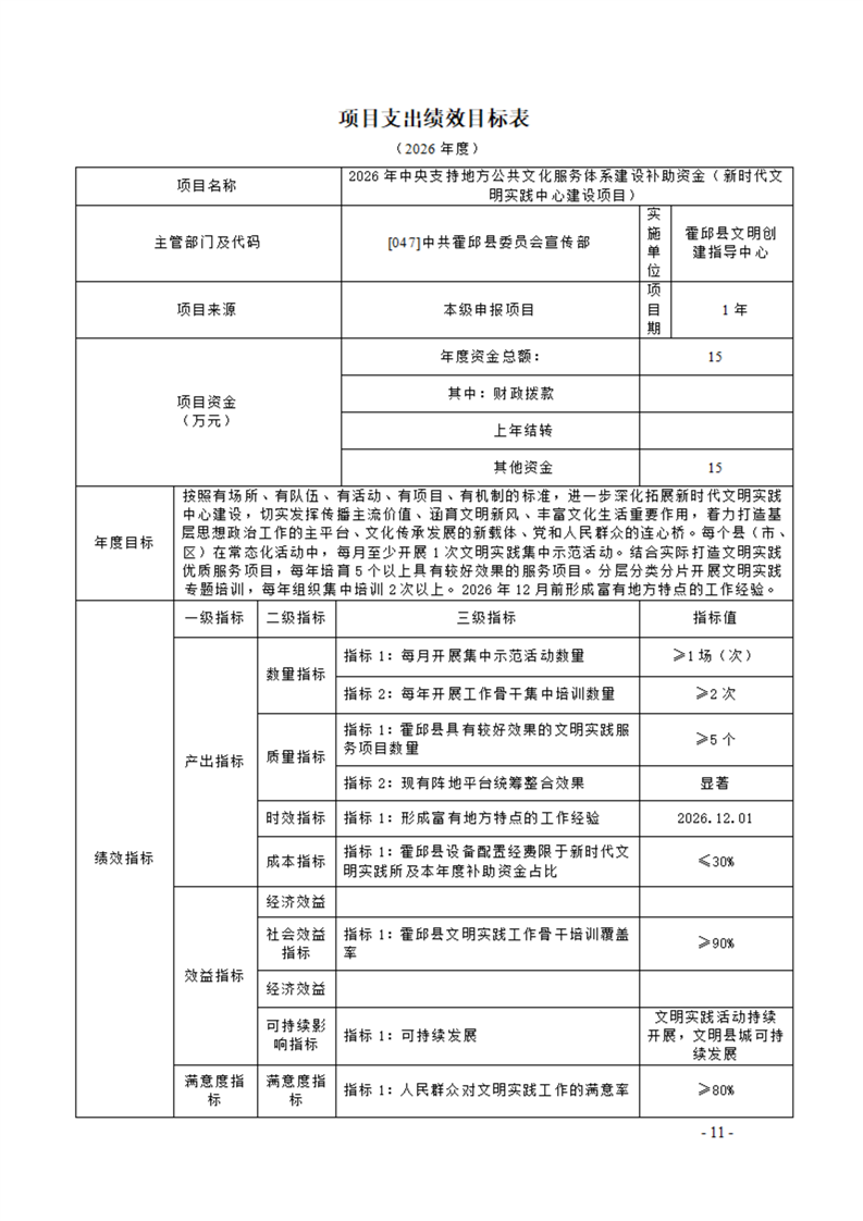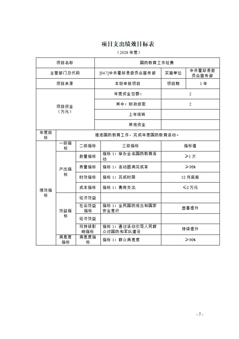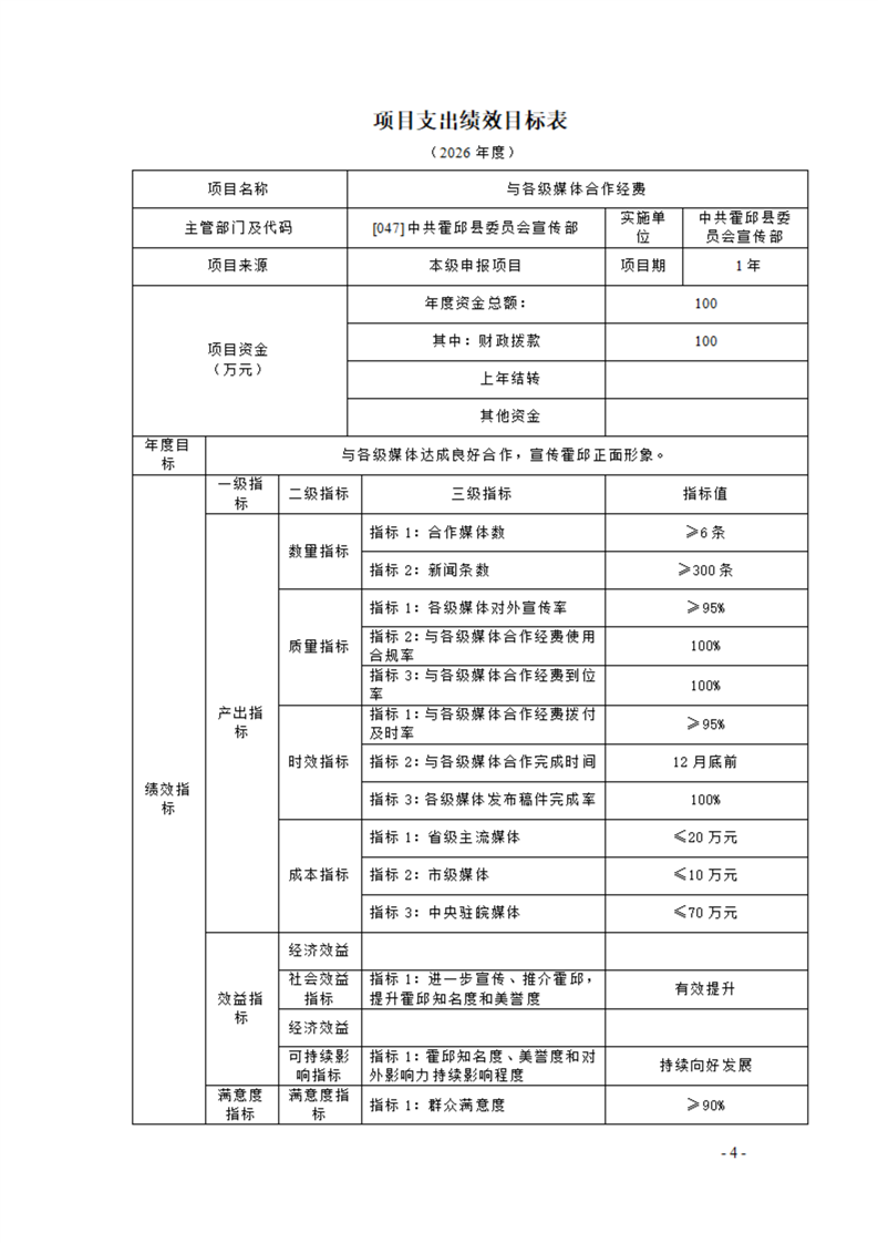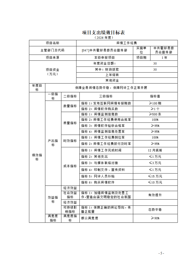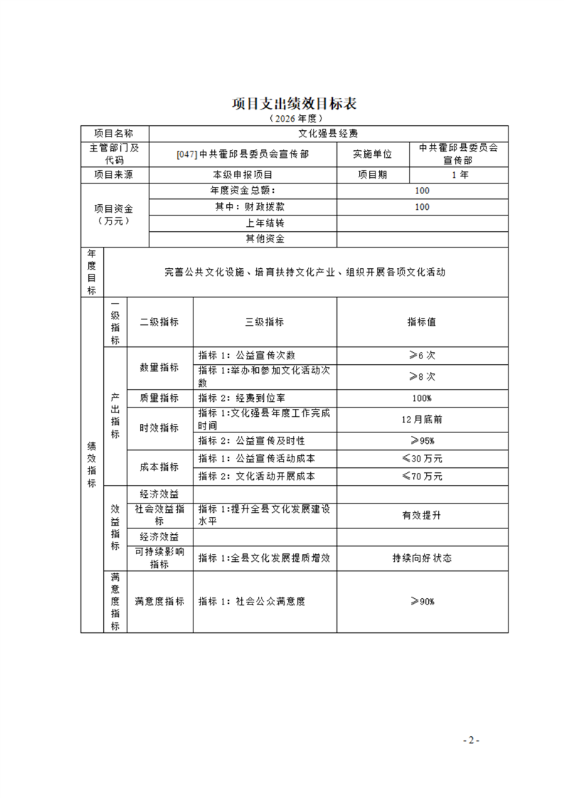 中共霍邱县委宣传部本级2026年单位预算公开