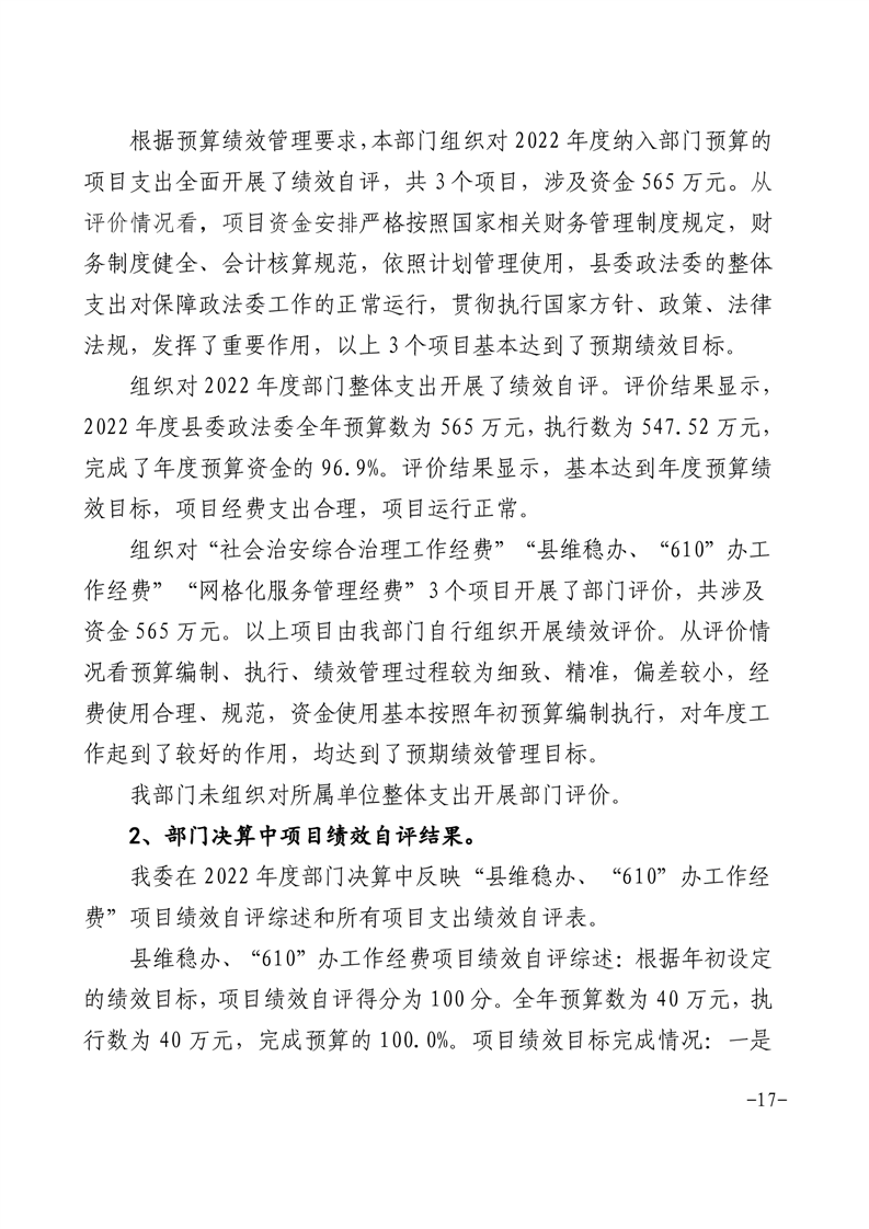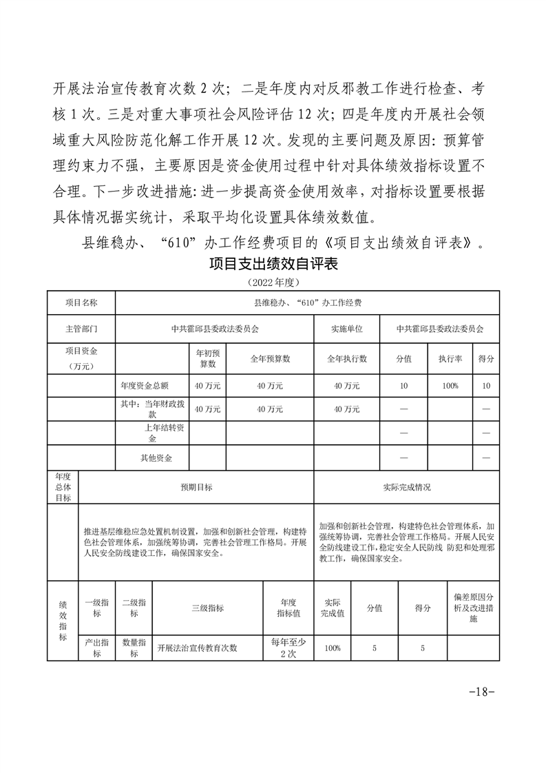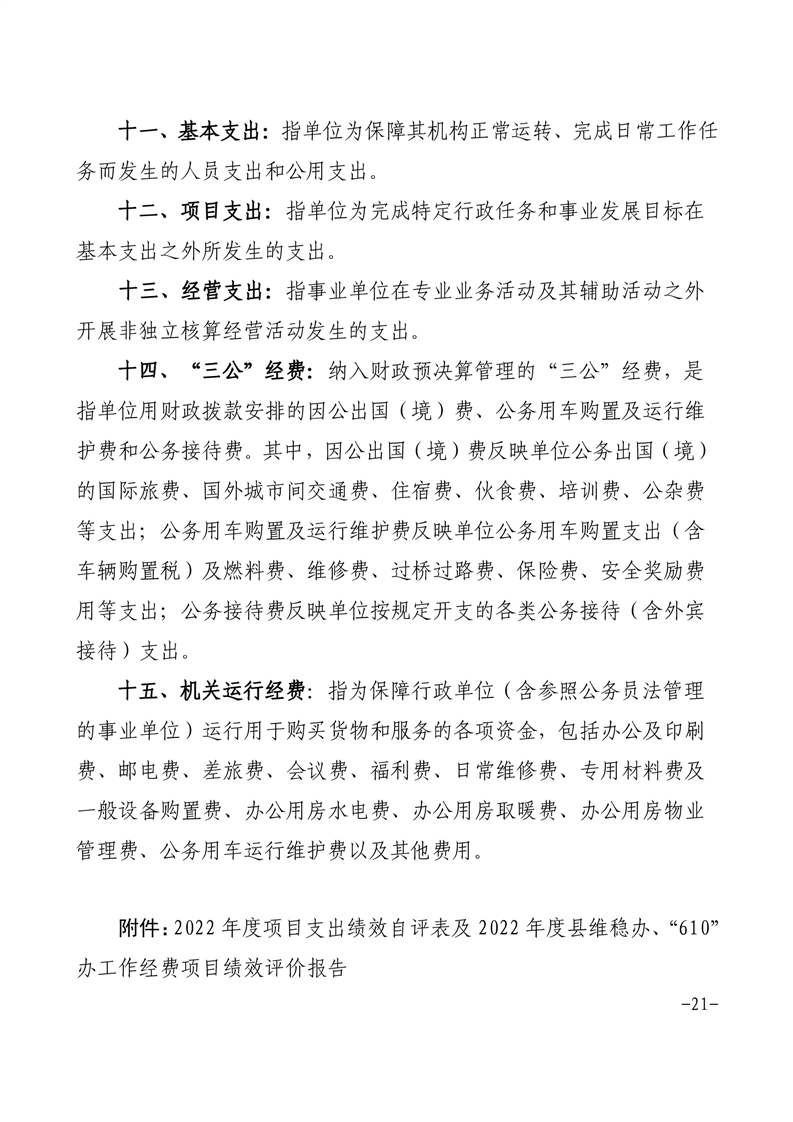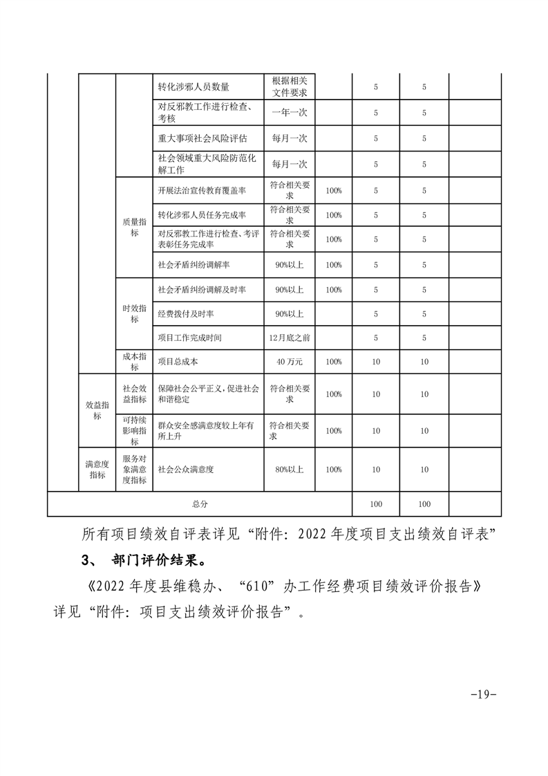 2022年度项目支出绩效自评表及2022年度县维稳办“610”办工作经费项目绩效评价报告.pdf