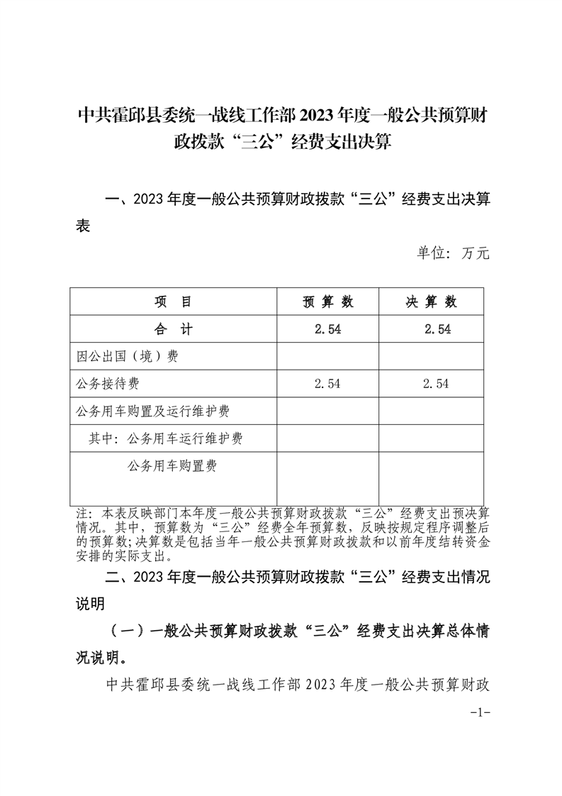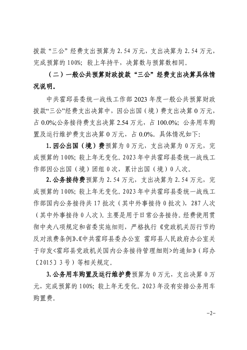 中共霍邱县委统一战线工作部2023年度一般公共预算财政拨款“三公”经费支出决算