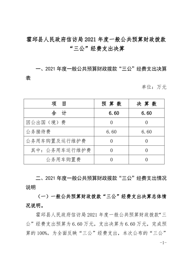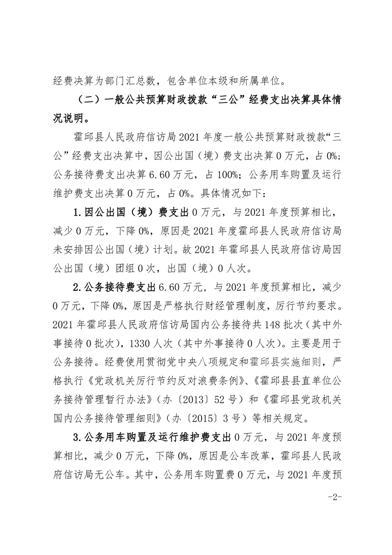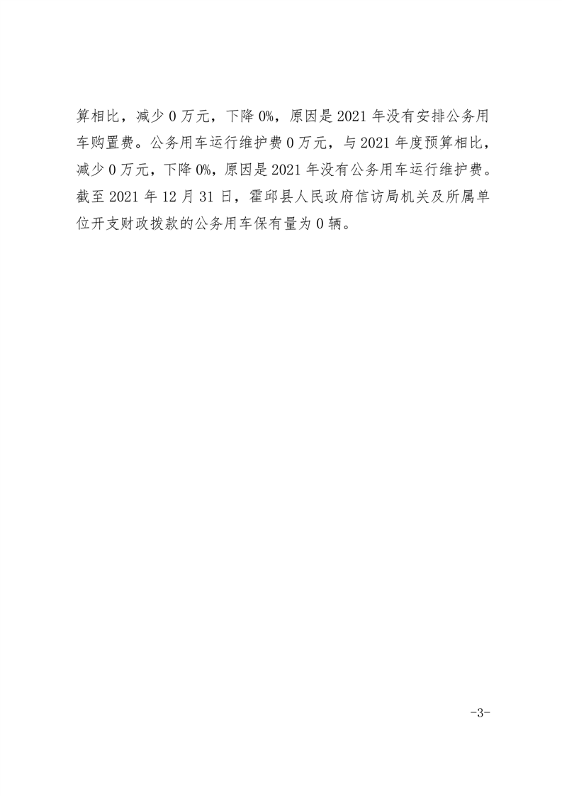 霍邱县人民政府信访局2021年度一般公共预算财政拨款“三公”经费支出决算