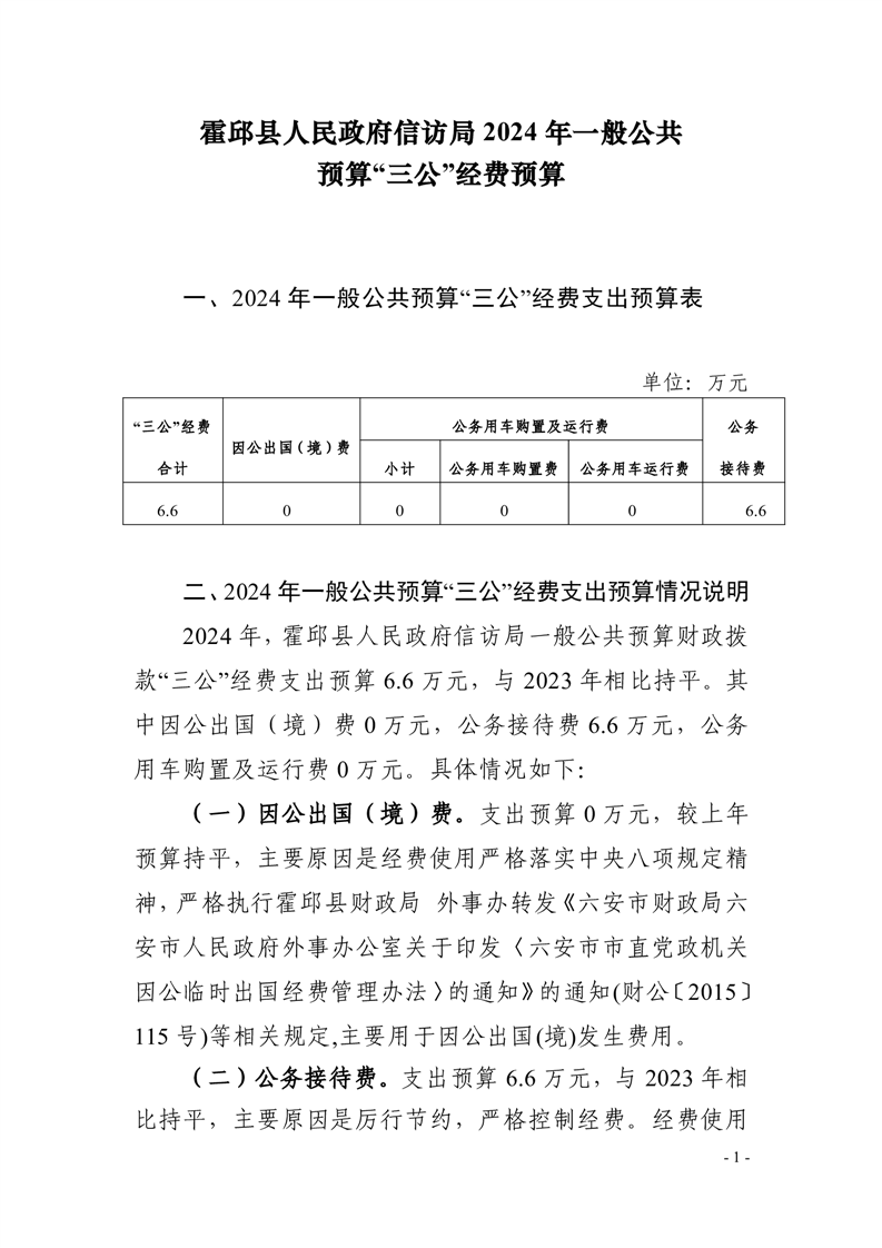 霍邱县人民政府信访局2024年部门单位一般公共预算安排“三公”经费情况公开