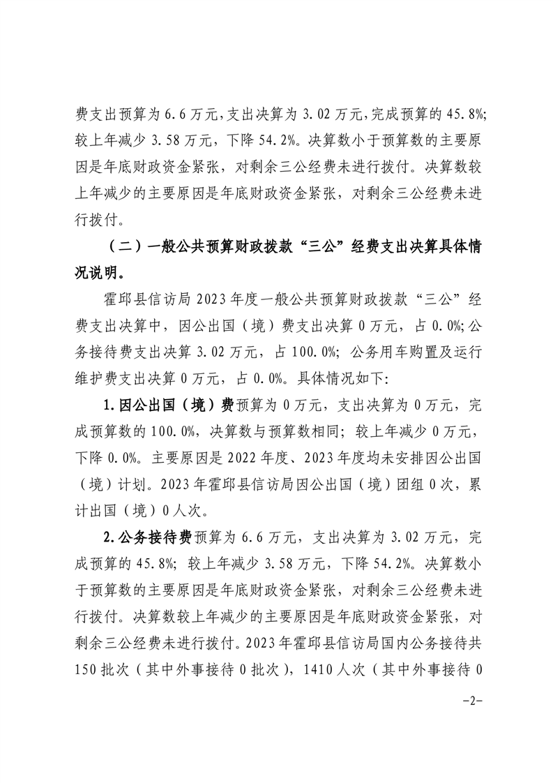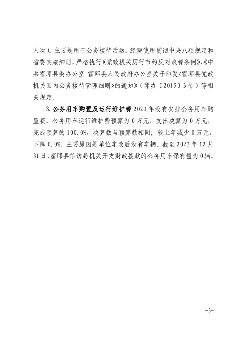 霍邱县信访局2023年度一般公共预算财政拨款“三公”经费支出决算