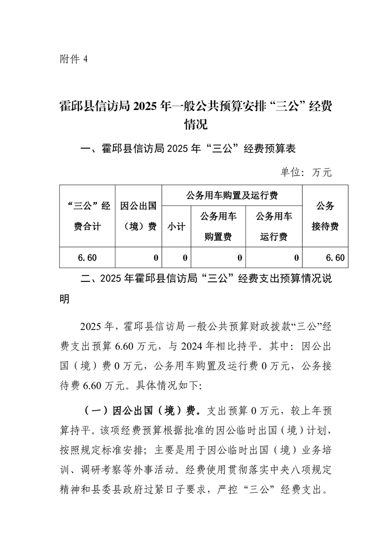 霍邱县信访局2025年一般公共预算安排“三公”经费情况公开